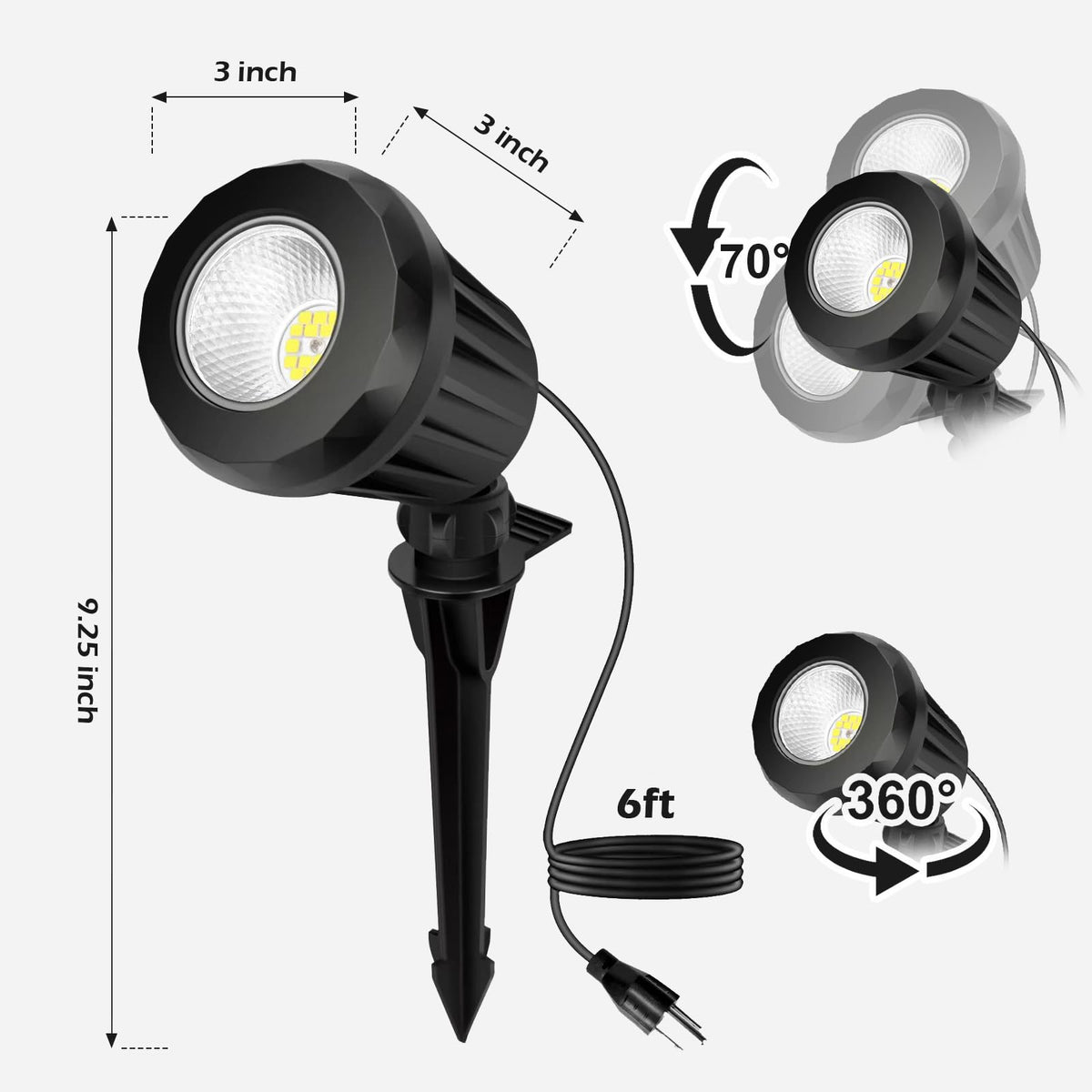 Holeva Halloween Chirstmas Spotlight Outdoor: 10W LED Spot lights Outdoor 2700K Warm White with 3 Extra Lenses (Red Green Blue) | 120V Plug in Landscape Lighting with IP67 Waterproof for Yard 4 Pack