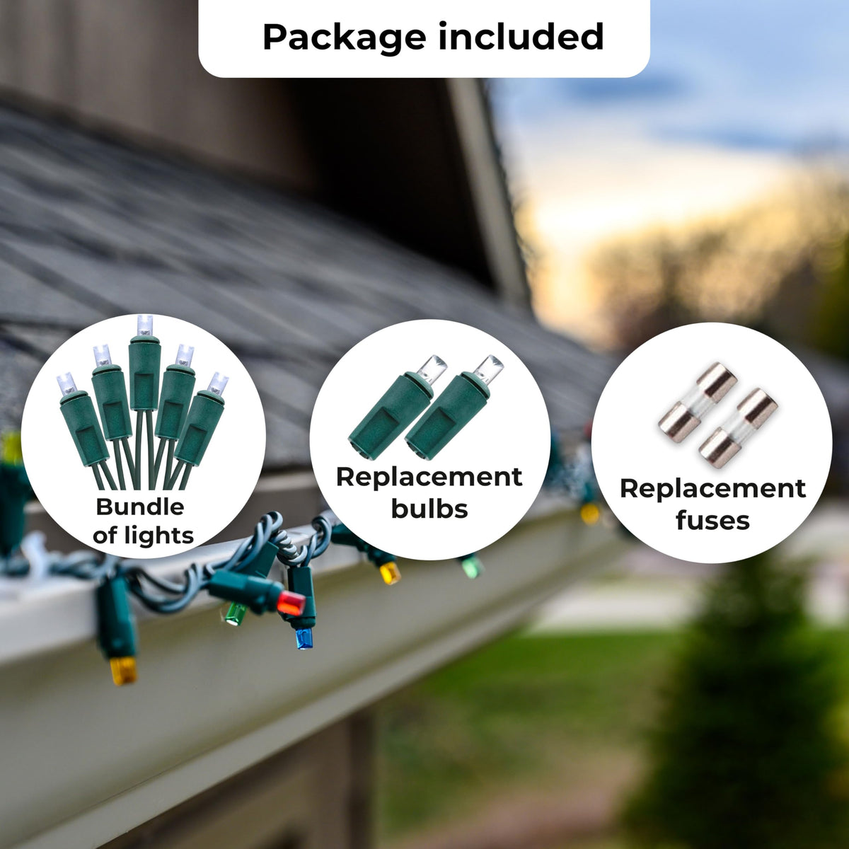 The set features 60 mini cool white LED bulbs on a durable green wire, ensuring a harmonious blend with your holiday greenery. Crafted from well-made plastic, these lights are built to last, offering a weather-resistant construction that withstands the elements. The energy-efficient LED technology not only ensures long-lasting illumination but also consumes minimal power compared to traditional bulbs. With a length of 16 feet, the strand includes male and female plugs for easy connection, along with two extra fuses for added convenience.