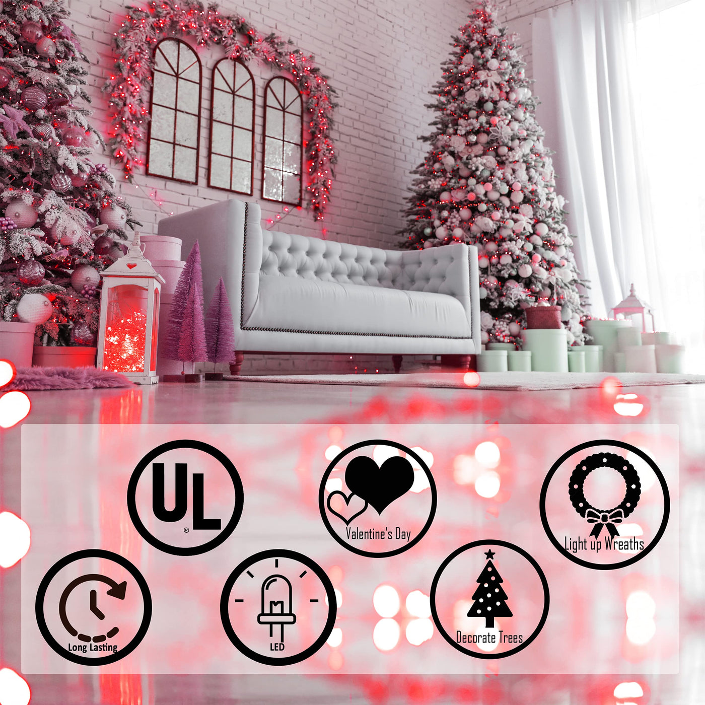 Illuminate Your Holiday Festivities With This Stunning 100 Led Red Christmas Lights Set. Measuring 26.9 Feet Long With A Green Wire, These Ul Certified String Lights Are Perfect For Decorating Both Indoors And Outdoors. Drape Them Around Your Christmas Tree, Line Your Roof, Or Create A Mesmerizing Display In Your Yard. The Vibrant Red Hue Adds A Warm, Festive Glow To Any Space. With 100 Individual Led Bulbs, You'Ll Enjoy Brilliant Illumination That'S Energy-Efficient And Long-Lasting. Celebrate In Style With This Versatile And Eye-Catching String Light Set.