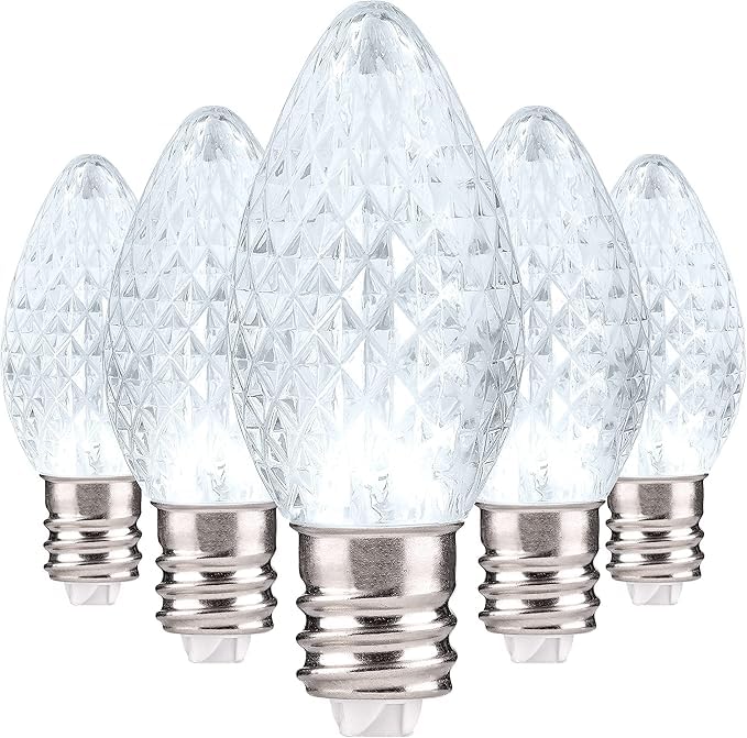 Holiday Lighting Outlet Faceted C7 Christmas Lights | Cool White Led Light Bulbs Holiday Decoration | Warm Christmas Decor For Indoor & Outdoor Use | 2 Smd Leds In Each Light Bulb | Set Of 25