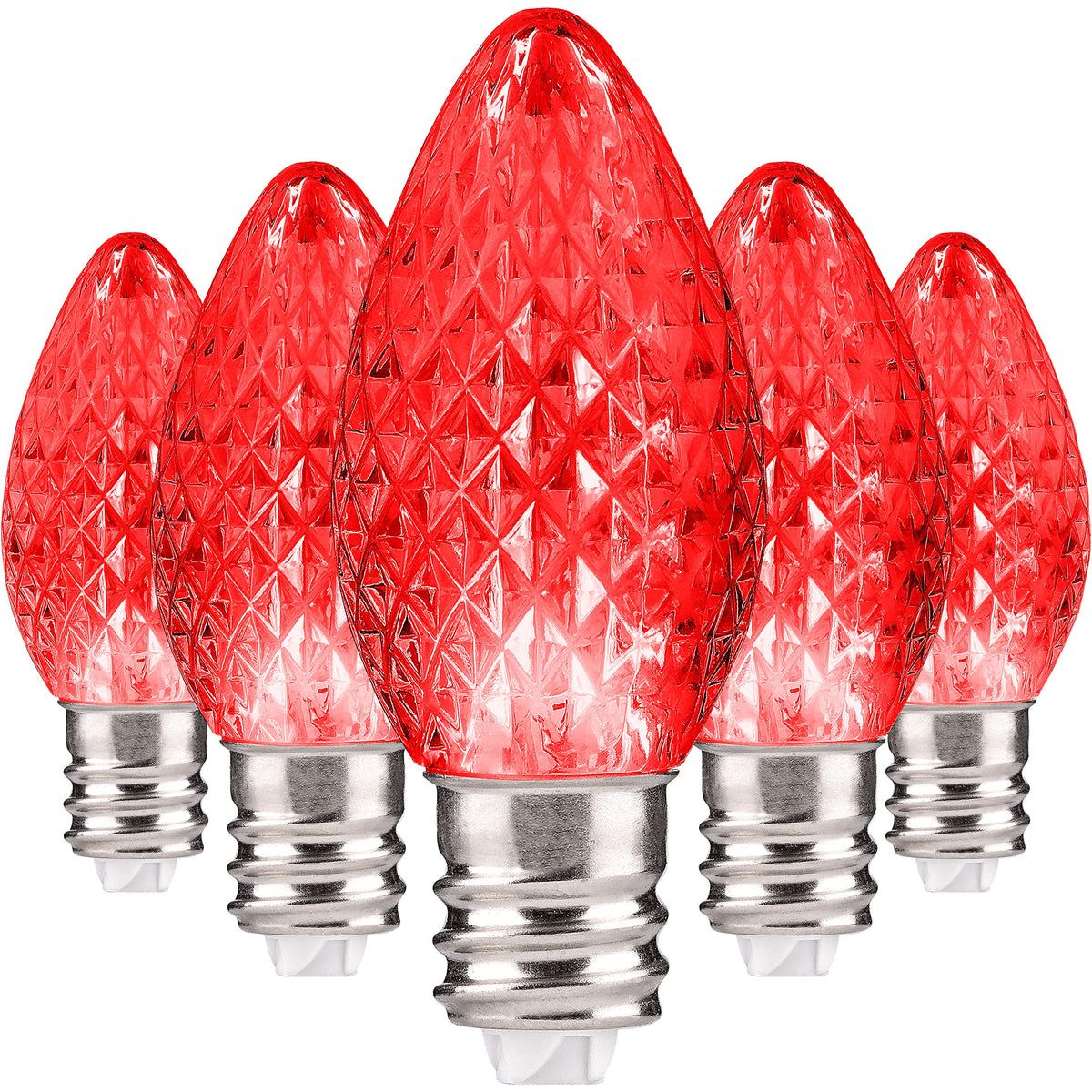 Holiday Lighting Outlet Faceted C7 Christmas Lights | Red Led Light Bulbs Holiday Decoration | Warm Christmas Decor For Indoor & Outdoor Use | 2 Smd Leds In Each Light Bulb | Set Of 25