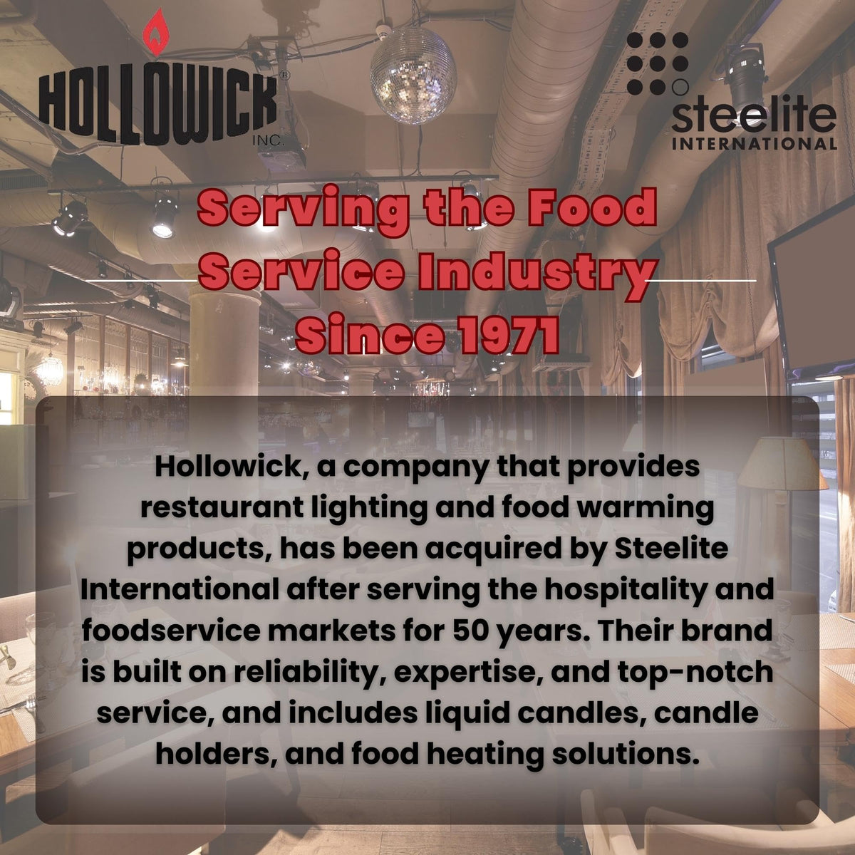 Hollowick long burning wax disposable plastic fuel cells are manufactured in the USA. We offer them in a variety of burn time sizes and bulk case quantities to meet our customer's needs. These are a great alternative to the mess of traditiaonl wax products and do not require batteries not flameless candles. They provide a clean burn and are made for commercial foodservice tabletop use. Safe for both indoor and outdoor use, Unlike citronella, our oil is unscented and burns cleaner than paraffin wax. Designed to fit with the wide selection of decorative Hollowick your tabletop lamps. Easy maintenance because no wax drips and no cleaning and scrapping up spilled wax as our oil is in self-contained clear disposable containers that can be refilled or thrown away when empty. Built in wicks can be light, extinguished and re-lit again and again. Child resistant closures for safety. Look for our replacement wick burner assemblies in 3 and 6 inch sizes, as well as, bulk sizes of our refillable liquid wax. While most commonly our liquid oil is used in commercial settings, an excellent to have on hand for weather and other unforeseen emergency uses too. Other suggested uses are church or funeral memorial unity or luminaries lights. Use for Candelaria's, a party, in a fireplace or on the mantle, a centerpiece for a special occasion, holidays such as Christmas, Thanksgiving, Hanukkah, Lunar New Year and Kwanzaa.