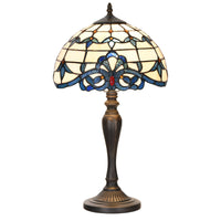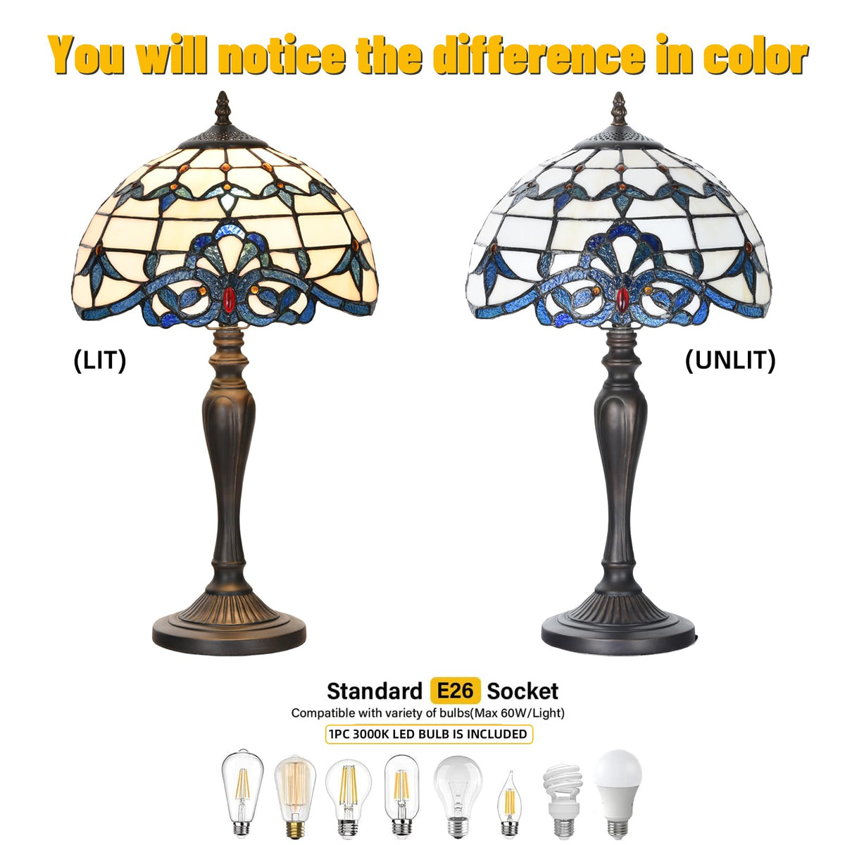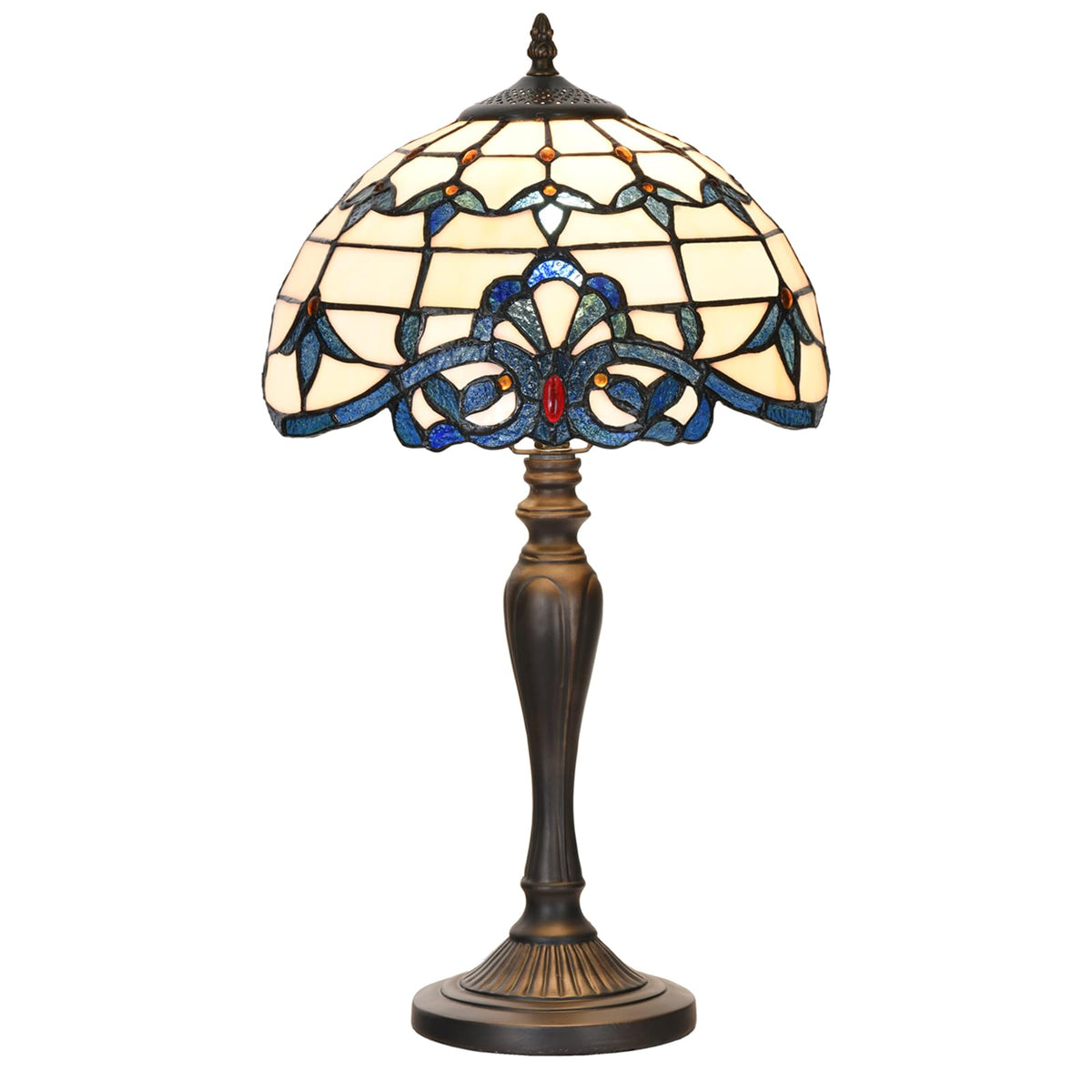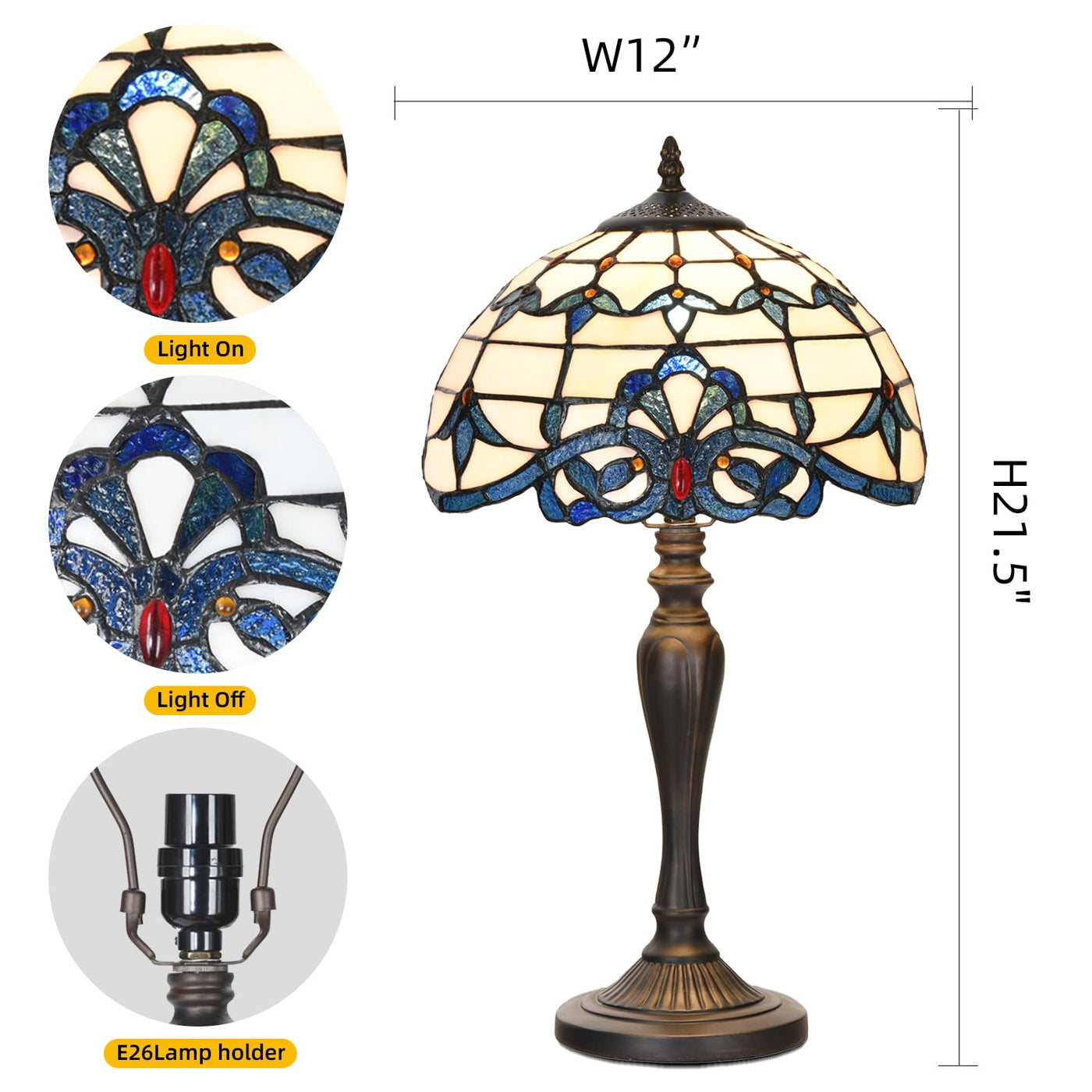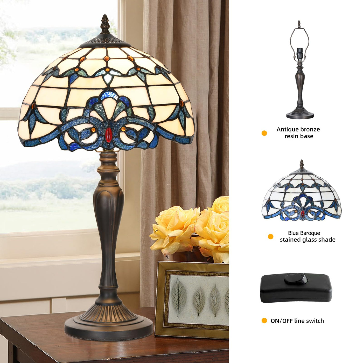 Homebeauty Tiffany Table Lamp Bedside Stained Glass Lamp Blue Baroque Reading Desk Light 12X21.5 Inches For Bedroom Living Room