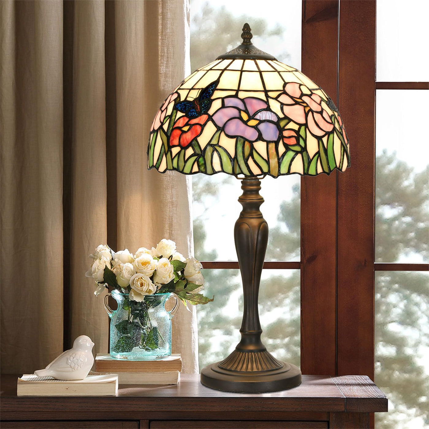 Q: What makes this lamp a unique decor piece?A: Each HomeBeauty Tiffany Table Lamp is handmade by skilled craftsmen, making no two lamps alike. The intricate stained glass design featuring flowers and butterflies not only serves as a lighting source but also as a unique piece of art.