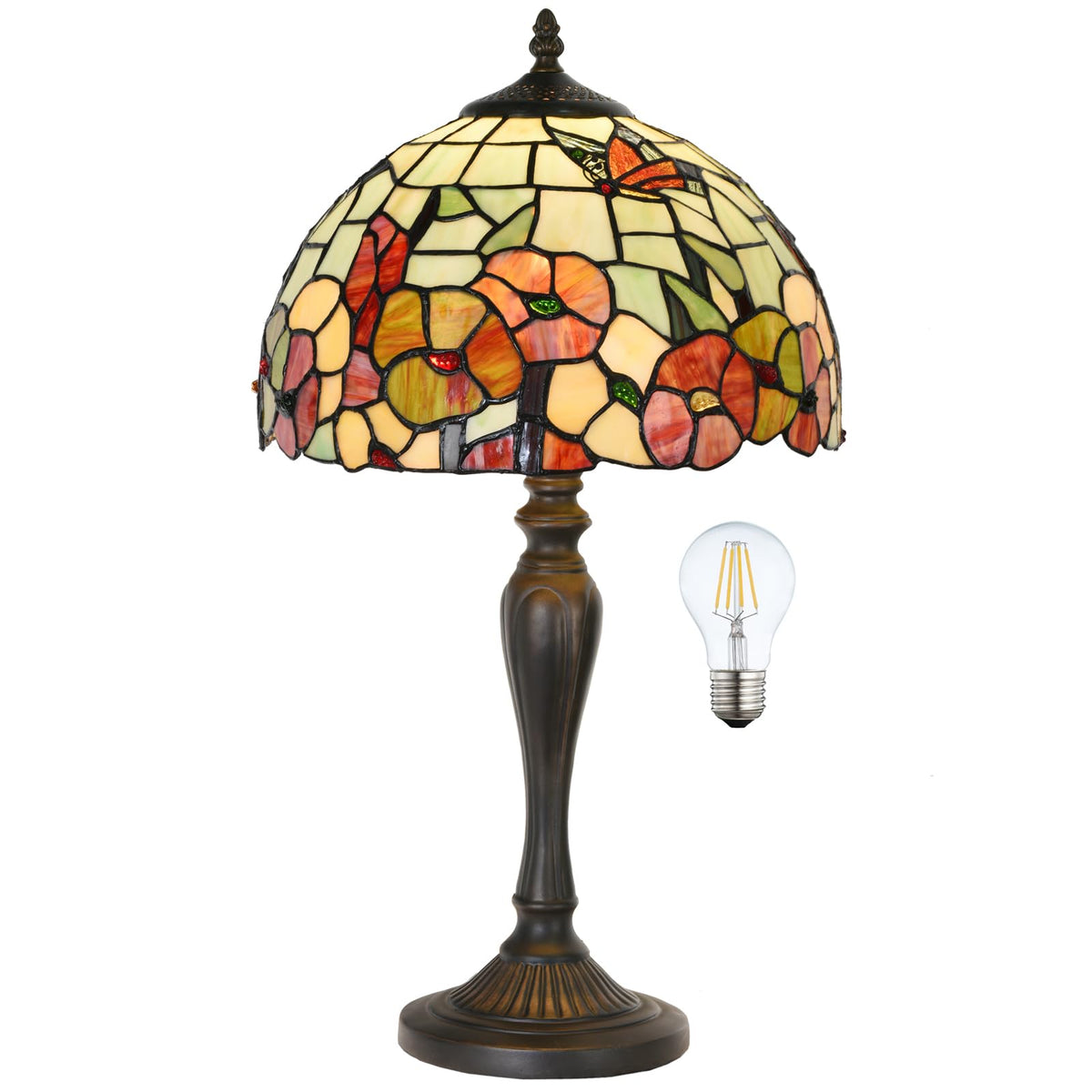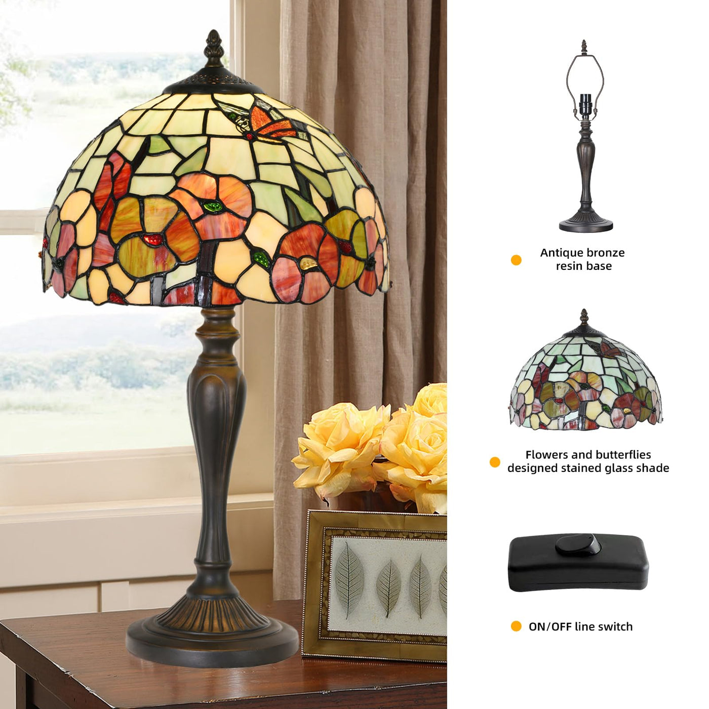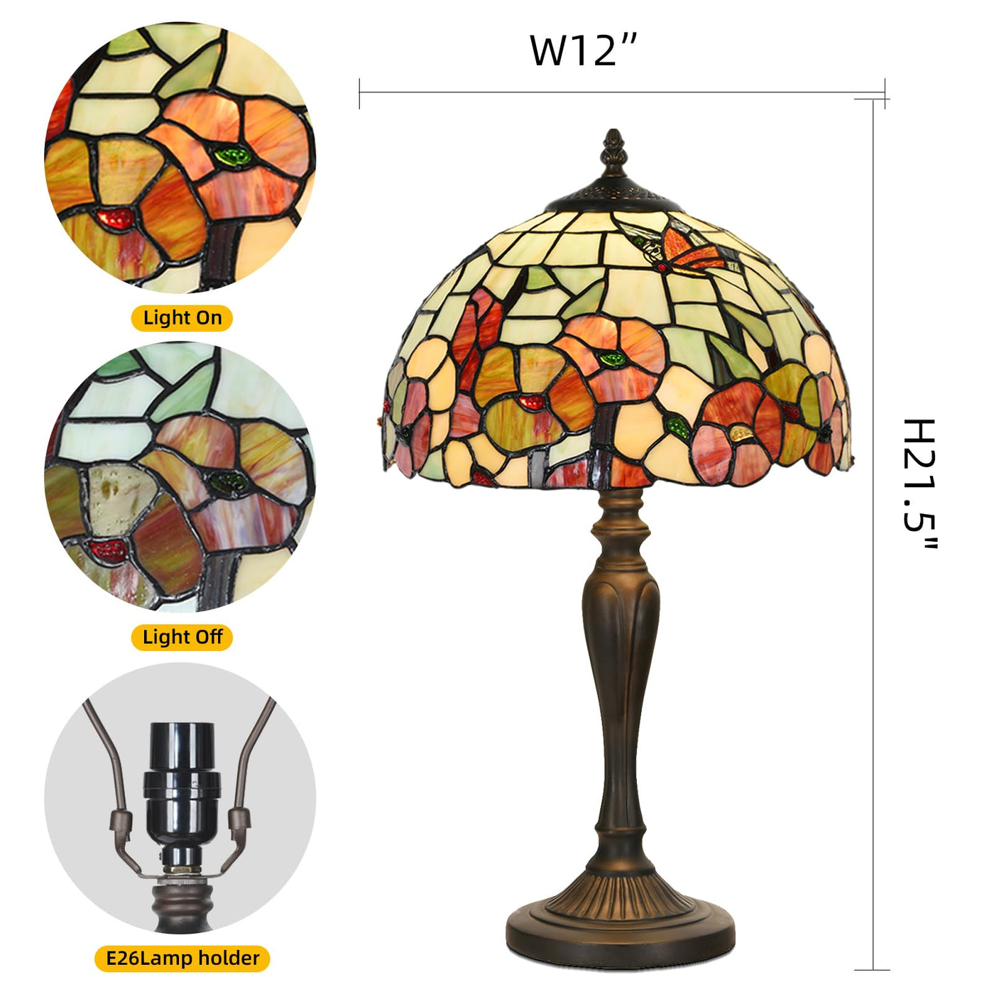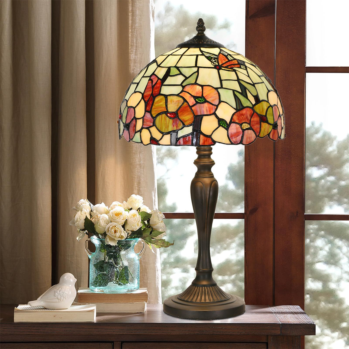 Homebeauty Tl0002 Tiffany Traditional Tiffany Style Table Lamp 21.5'' High Blossoming Antique Stained Glass Lamp For Living Room