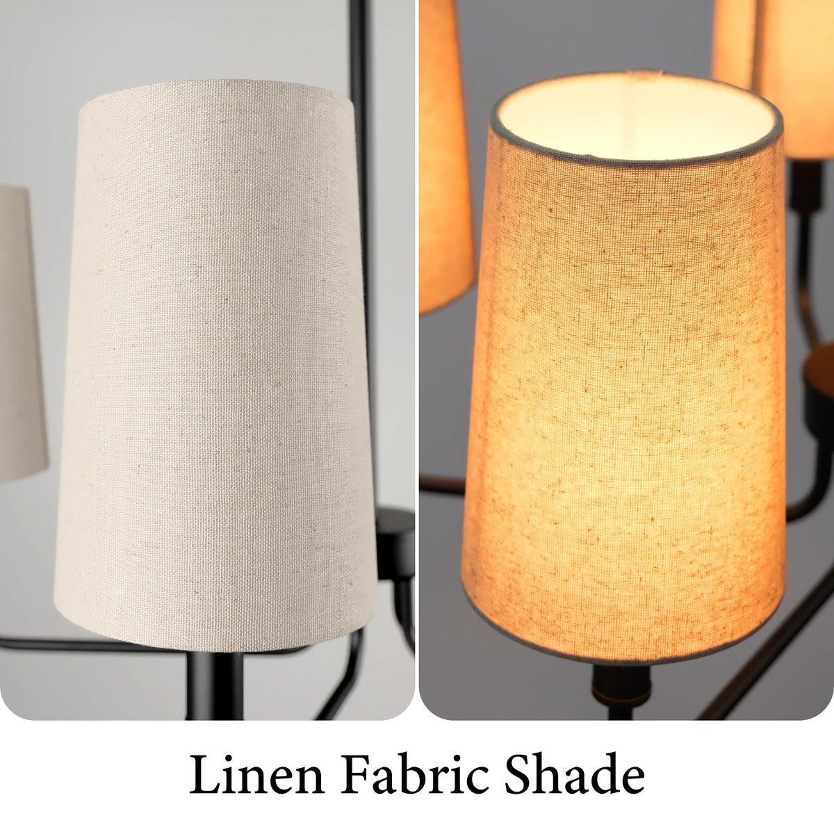 Homebelife Chandelier, Matte Black With Beige Linen Fabric Shade, Farmhouse Linear Island Lighting Fixture For Kitchen, Dining R