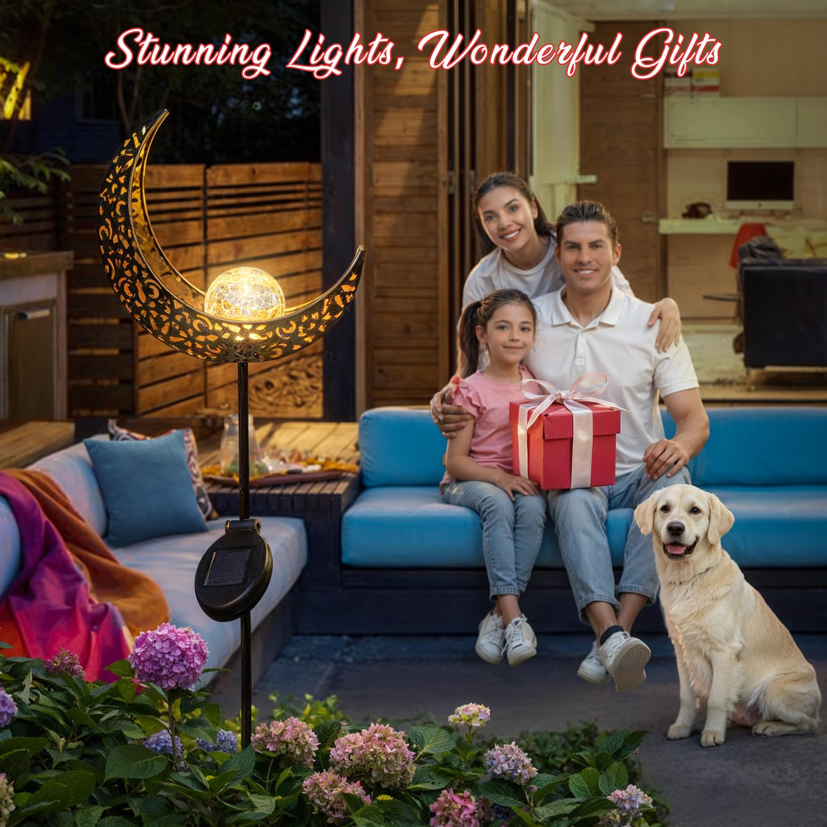 Homeimpro 2Pack Moon Garden Solar Lights Outdoor Stakes, Waterproof Crackle Glass Metal Patio, Backyard Decorations, Balcony Lawn Ornaments, Gifts For Mom Dad Grandma (Bronze)
