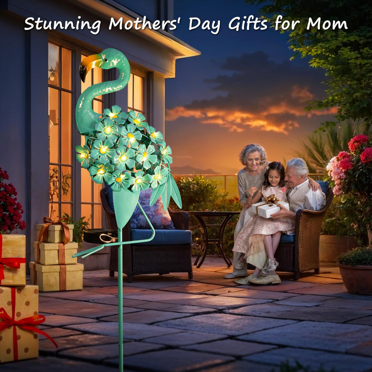 Q: What occasions are these flamingo garden lights suitable for as gifts?A: These flamingo garden lights make perfect gifts for a variety of occasions, including birthdays, Mother's Day, Father's Day, housewarmings, Christmas, and other special events, thanks to their charming and versatile design.