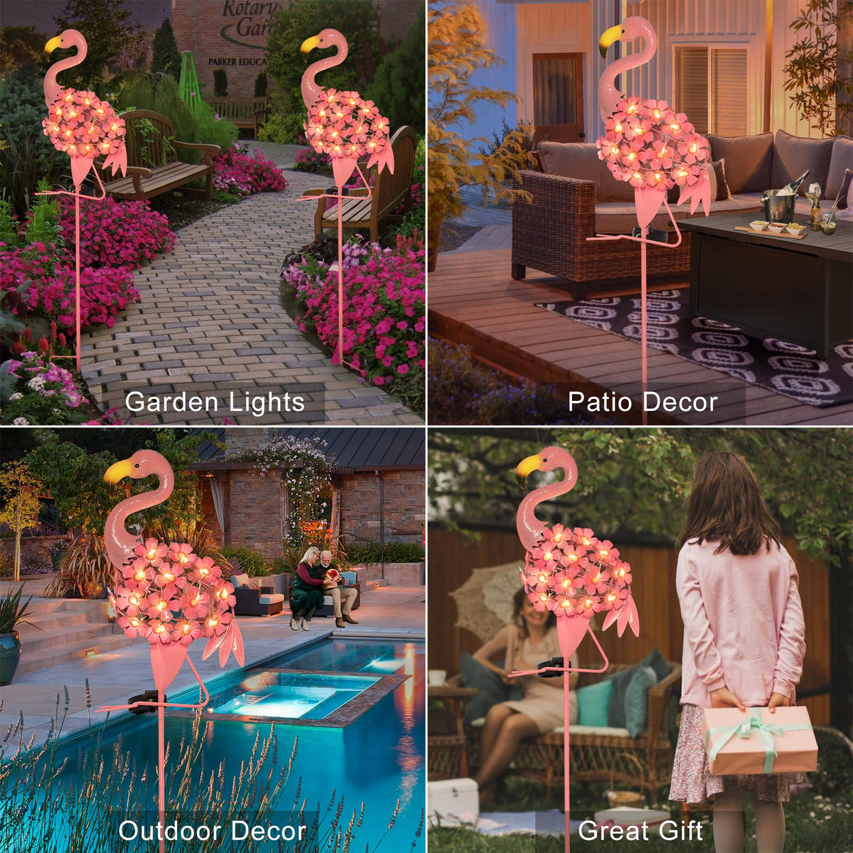 Q: What occasions are suitable for gifting these flamingo solar lights?A: These solar lights make excellent gifts for various occasions, including Valentine's Day, Mother's Day, Ramadan, Thanksgiving, Christmas, and birthdays. They are a thoughtful gift for mothers, grandmothers, sisters, wives, and friends.