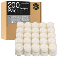 Homelights Tea Lights Candles, Giant 100,200,300 Bulk Packs, 4-4.5 Hrs White Unscented European Smokeless Clear Cup Tea Lights For Shabbat, Weddings, Christmas, Home Decorative- 200 Pack
