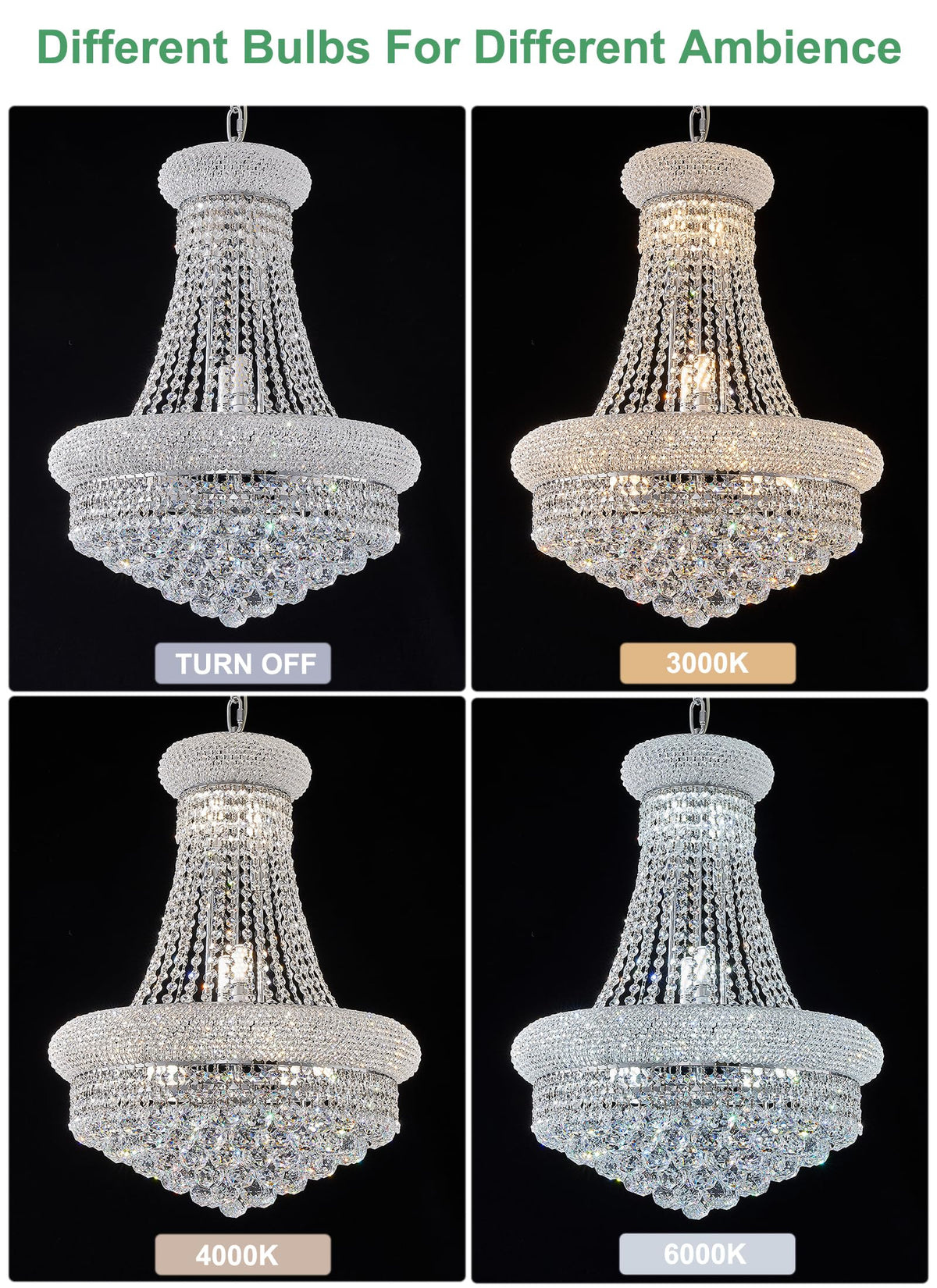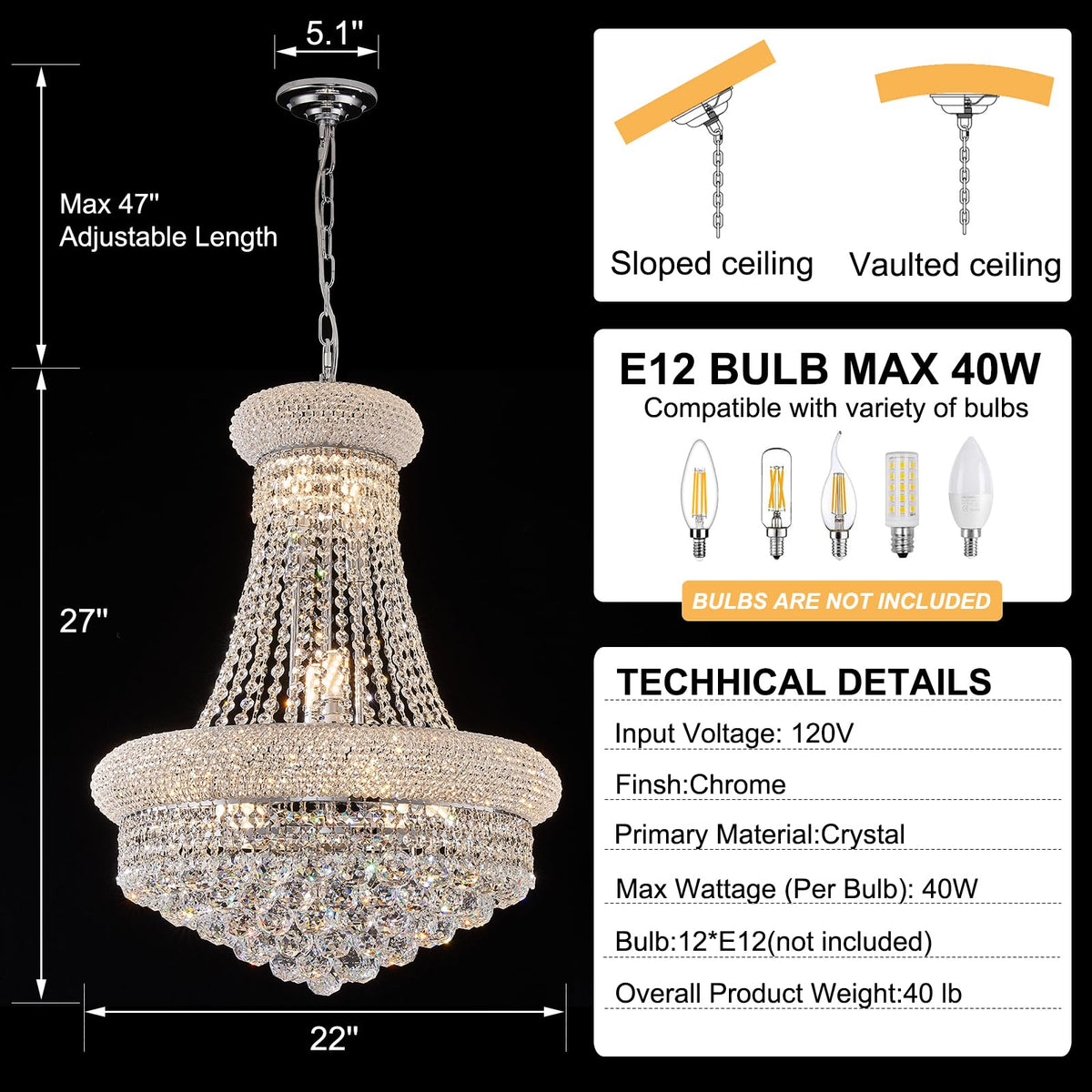 Homeooze 12 - Light Unique Empire Crystal Chandelier For Foyer Entrance Living Room Dining Room Bedroom Entryway Chrome Finish