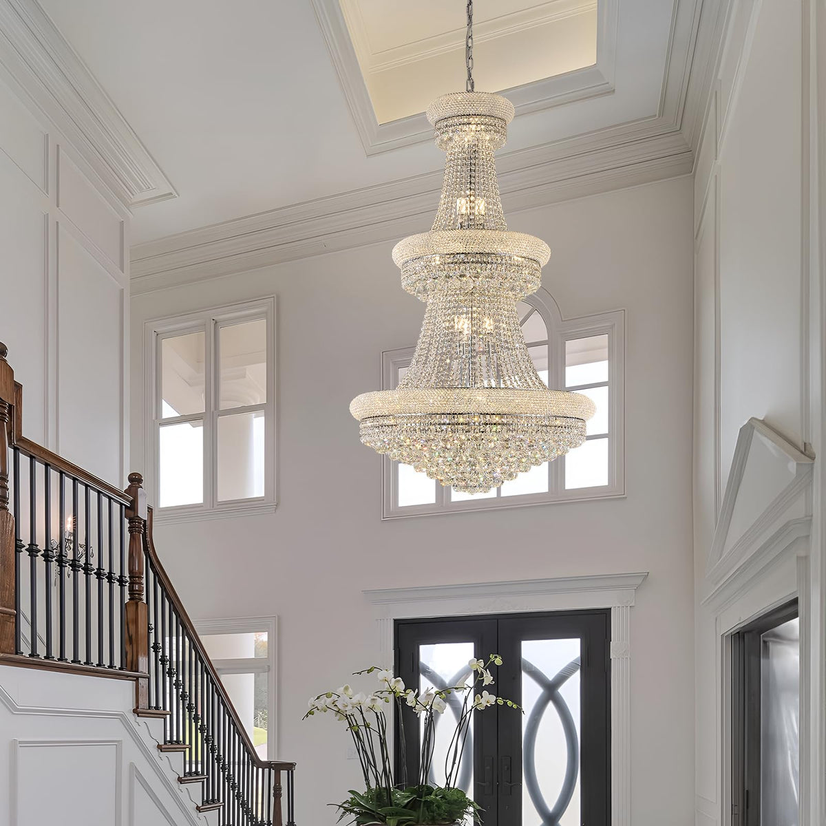 Homeooze 31 - Light Empire Large Crystal Chandelier For High Ceiling Foyer Entryway Staircase Living Room Dining Room Chrome Finish