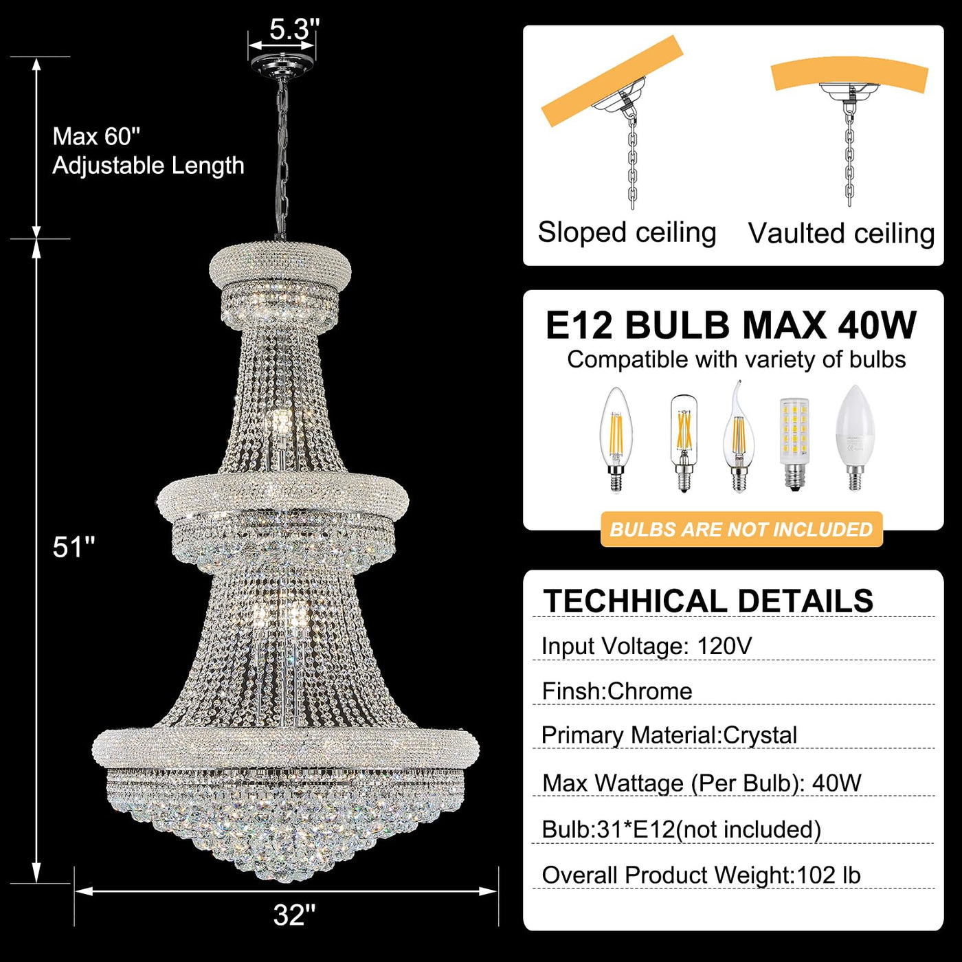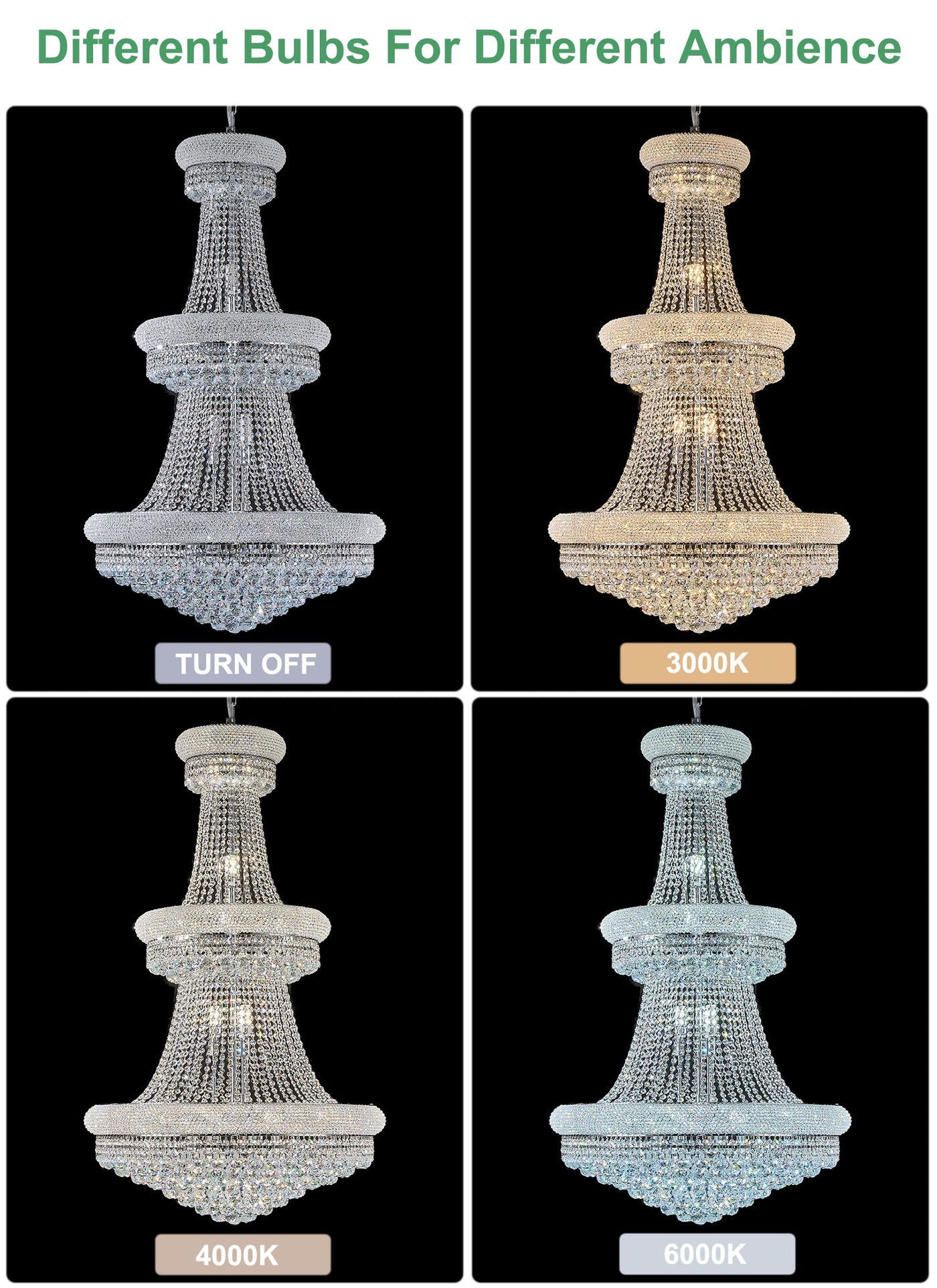 Homeooze 31 - Light Large Empire Crystal Chandelier For High Ceiling Foyer Entryway Staircase Living Room Dining Room Chrome Fin
