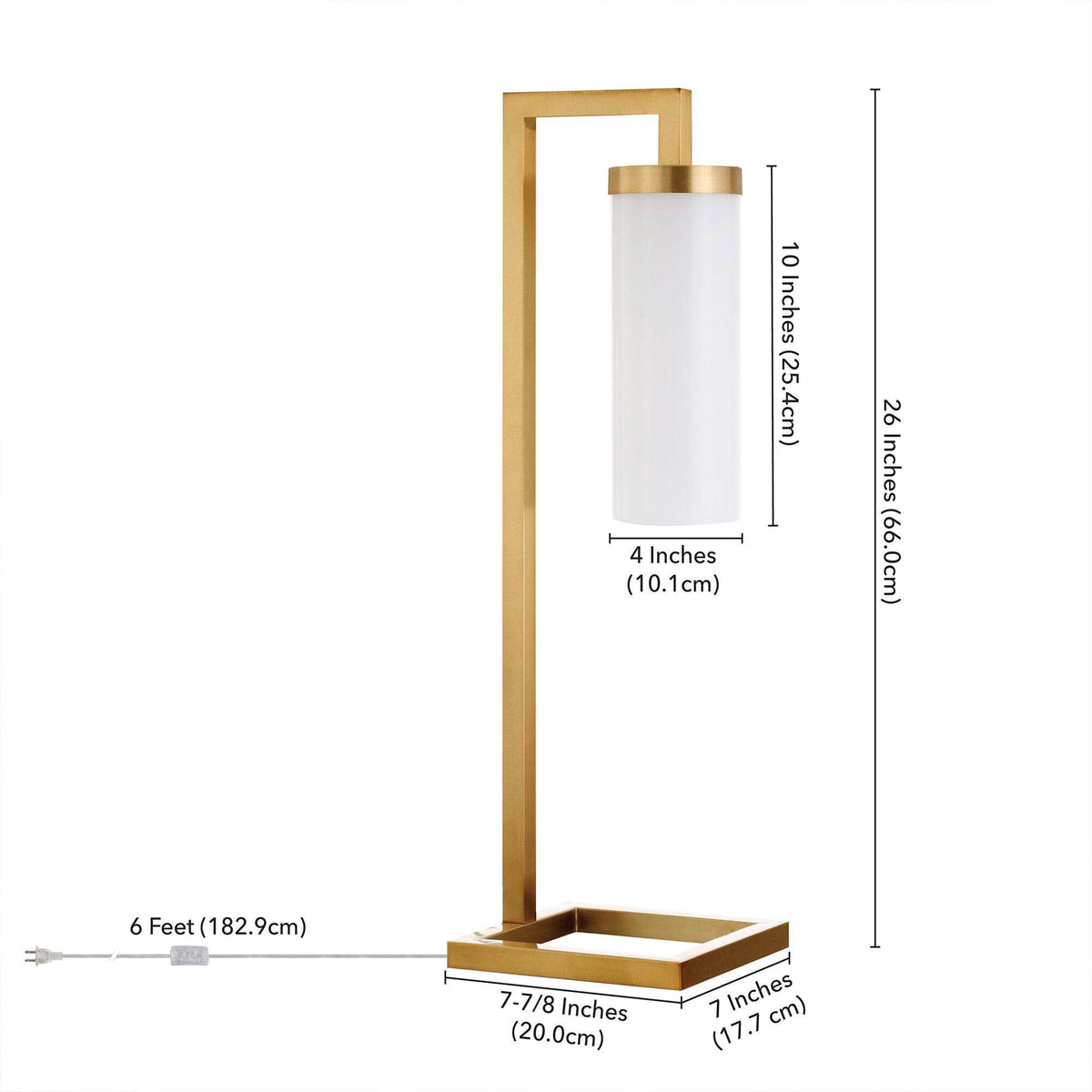 - **Elegant Design**: The lamp features a stunning brass metal arched base paired with a clean white glass cylinder shade, providing a modern yet timeless look that complements various interior styles.