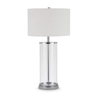 Illuminate your home with this stunning 28-inch nickel glass table lamp, designed to infuse any space with brightness and elegance. The polished nickel base and chic white drum shade create a perfect blend of style and functionality, making it an ideal addition to your coastal-themed décor or modern interiors. This standard table lamp is not only a source of general lighting but also a statement piece that enhances the overall aesthetic of your home.