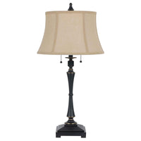 Illuminate your space with the elegant Bronze Metal Two Light Table Lamp, featuring a sophisticated Beige Empire Shade. This stylish piece combines functionality and design, making it a perfect addition to any room. Standing at 31 inches tall, the lamp's bronze metal base adds a touch of classic charm, while the fabric shade softens the light, creating a warm and inviting atmosphere.