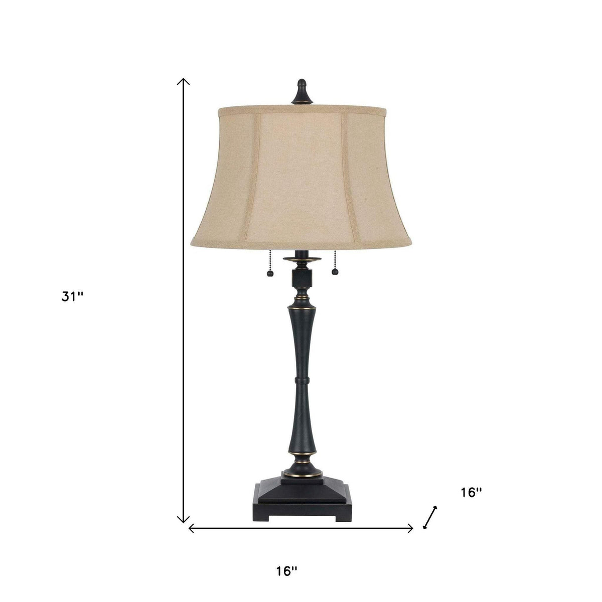 Homeroots 31" Bronze Metal Two Light Table Lamp With Beige Empire Shade