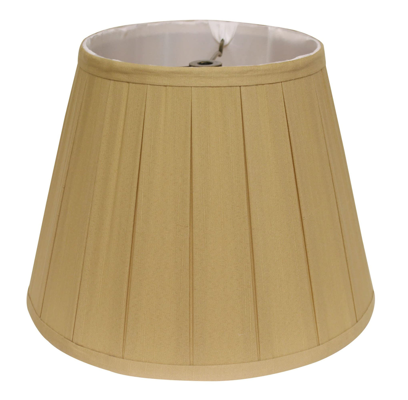This Primrose Slanted Crimped Box Shantung Lampshade has a hint of traditional flair and will be a great addition to your lamp base. This softback lampshade includes a standard washer fitter that fits over a standard harp and can be used with your existing finial design. This Excellent crafted box shape has a slight slant to give it some visual interest and is crafted of the finest shantung with a fold on top and bottom of the shade. Features. Excellent Fabric Lamp Shade. Includes Brass Finish Washer. Washer fitters sits on top of the harp. Intended for use with customers own finial. Shade measures 7 top diameter x 11 bottom diameter x 8 slant height. Softback lampshade with box pleat and white liner. Made from highquality shantung silkSpecifications. Bulbs Required Yes. Bulbs Replaceable Yes. Light Color Warm White. Lampshade Type Lamp shade. Attachment Type Spider. Shape Empire. Top Width Side to Side 7. Top Depth Front to Back 7. Bottom Diameter 11. Slant Height 8. Room Bedroom, Living Room. Bulb Shape Code A17. Material Shantung Silk. Size 11 L x 11 W x 8 H. Color Camel. Style Traditional. Finish Brass. Bulb Not Included but Required Yes. Height 8. Width 11. Depth 11. Weight 0.9 lbs