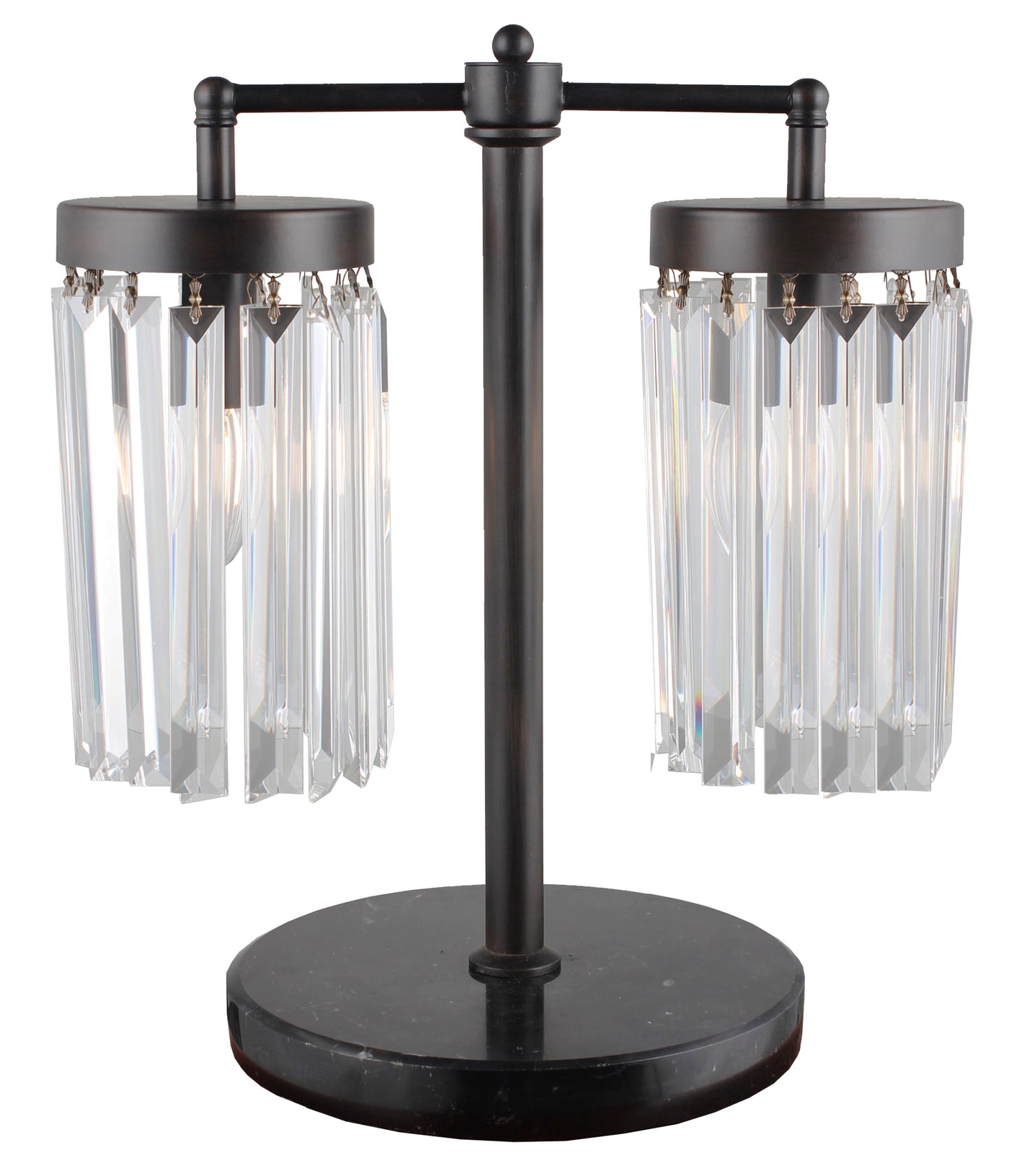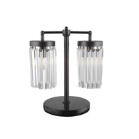 Embrace the good life with this hard working and stylish 18 black and faux crystals two light bedside table lamp. The lamp is made of sturdy iron and features a black color that holds two hanging lights bordered by faux crystal dangling pieces. Bedside table lamps help to add a soft and cozy glow to your bedroom. Great for evening reading Use this lamp anywhere and elevate the look of the whole space. The perfect lamp to create just the right natural and soothing light in your space. Features. Black Modern vintage style double hanging faux crystal pendants accent lamp. Comes complete with two clear faux crystal glass cylinder shades. Includes 2 distinct tiers of lighting. Socket Type is E12. Requires 2 bulbs, max 60 watt each, Not included. Built to last, sturdy construction from metalSpecifications. Bulbs Required Yes. Bulb Count 2. Bulb Maximum Wattage 60. Cord Included Yes. Voltage 110. Table Lamp Type Bedside. Base Color Black. Metal Type Iron. Number of Lights 2. Dimmable No. Dry, Damp or Wet Location Listed Dry. Fixture Material Glass. Battery Operated No. Switch Included Yes. Swing Arm No. Architect Lamp No. Builtin Outlet No. Theme No Theme. Shade Included Yes. Shade Color Clear. Shade Material Glass. Fabric Type No fabric. Smart Enabled No. Shade Fitter Type Threaded UNO. Batteries Included No. ETL Listed No. UL Listed No. MET Listed No. CPSIA Compliant No. Product Lifecycle Certifications No. Indoor Air Quality Certifications No. Recycled Content No. Adjustable Extension No. Height Adjustable No. Lamp Shape Cylinder. Bulb Included No. Base Material Iron. Bulb Base E12/Candelabra. Builtin USB Port No. Set Type Single. Shade Shape Cylinder. Fair Trade and Fair Labor Certifications No. Commercial Use No. Room Bedroom. Title 24 Compliant No. Material Metal. Number of Lamps Included 1. Shade Pattern No Pattern. Color Black. Dimension 18 H x 15 W x 6 D. Weight 13 lbs