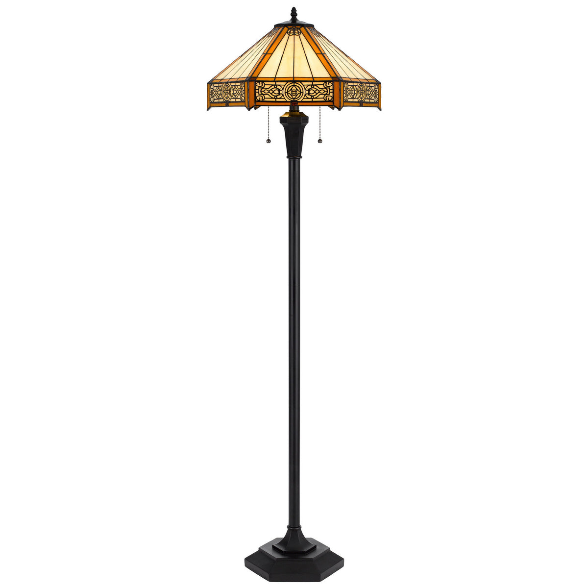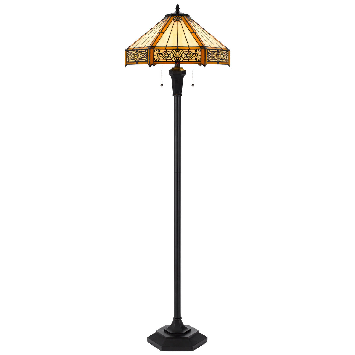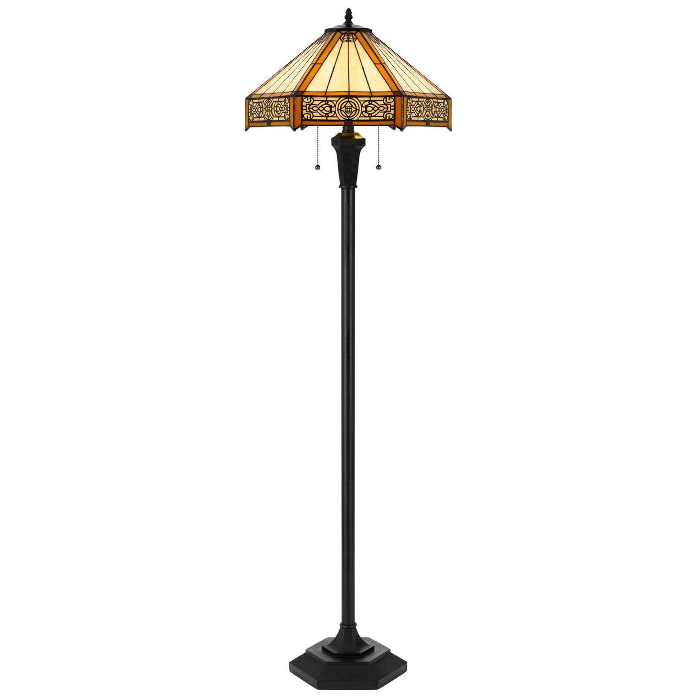 With this 60inch bronze two light traditional shaped floor lamp with orange and ivory abstract tiffany glass empire shade you bring design along with some warm ambient lighting to your space. The lamp is made of sturdy metal and features a bronze color. The bronze base coloring infuses a warm and rich tone to your space. The lamp shade has a empire shape and is made from glass. Classically styled, this traditional lamp features a straight pole that extends upwards from a single base. Use this lamp anywhere and elevate the look of the whole space. Bring some lite and good vibes into your space with this updated and stylishly designed lamp. Features. Durable Resin and Metal Construction. Weighted Base for Added Stability. Includes a 72 inch cord. Comes complete with a orange and ivory glass empire shade. Lamp features a pull chain switch for ease and convenience. Traditional in shape, this classic floor lamp will light up your roomSpecifications. Color Bronze, Orange Ivory. Material Metal. Shade Material Glass. Bulb Maximum Wattage 60. Voltage 120. Floor Lamp Type Traditional. Bulb Type Incandescent. Bulb Base E26/MediumStandard. Metal Type Steel. Switch Type Pull Chain. Shade Color Orange Ivory. Shade Shape Empire. Glass Type Tiffany Glass. Shade Pattern Abstract. Dimension 60 H x 18 W x 18 D. Weight 18.3 lbs