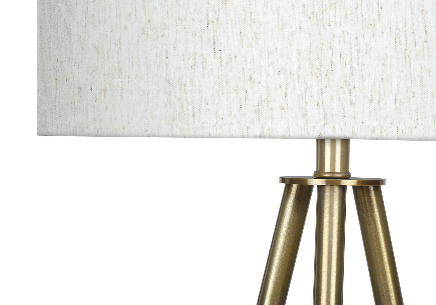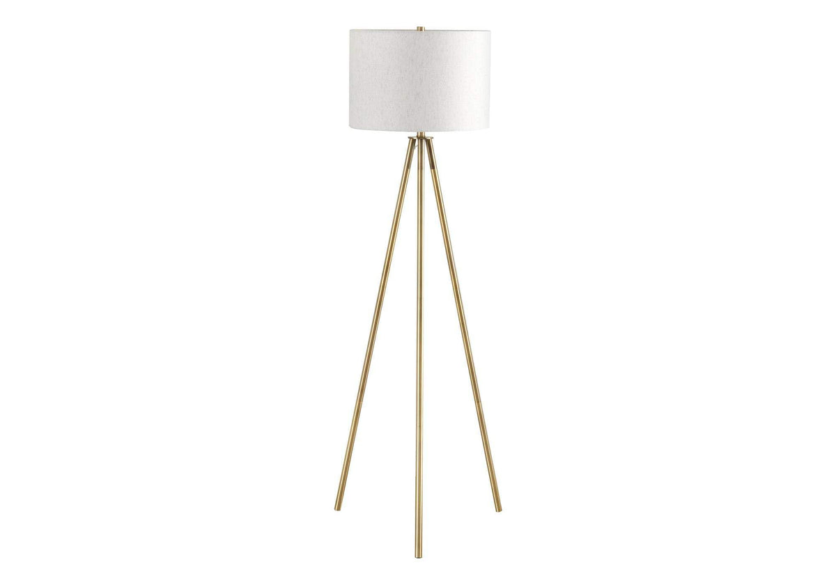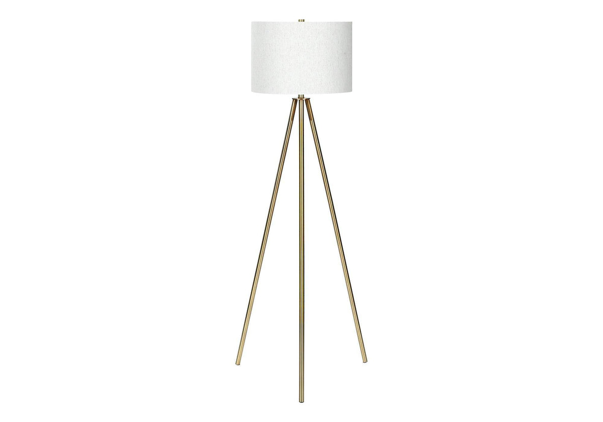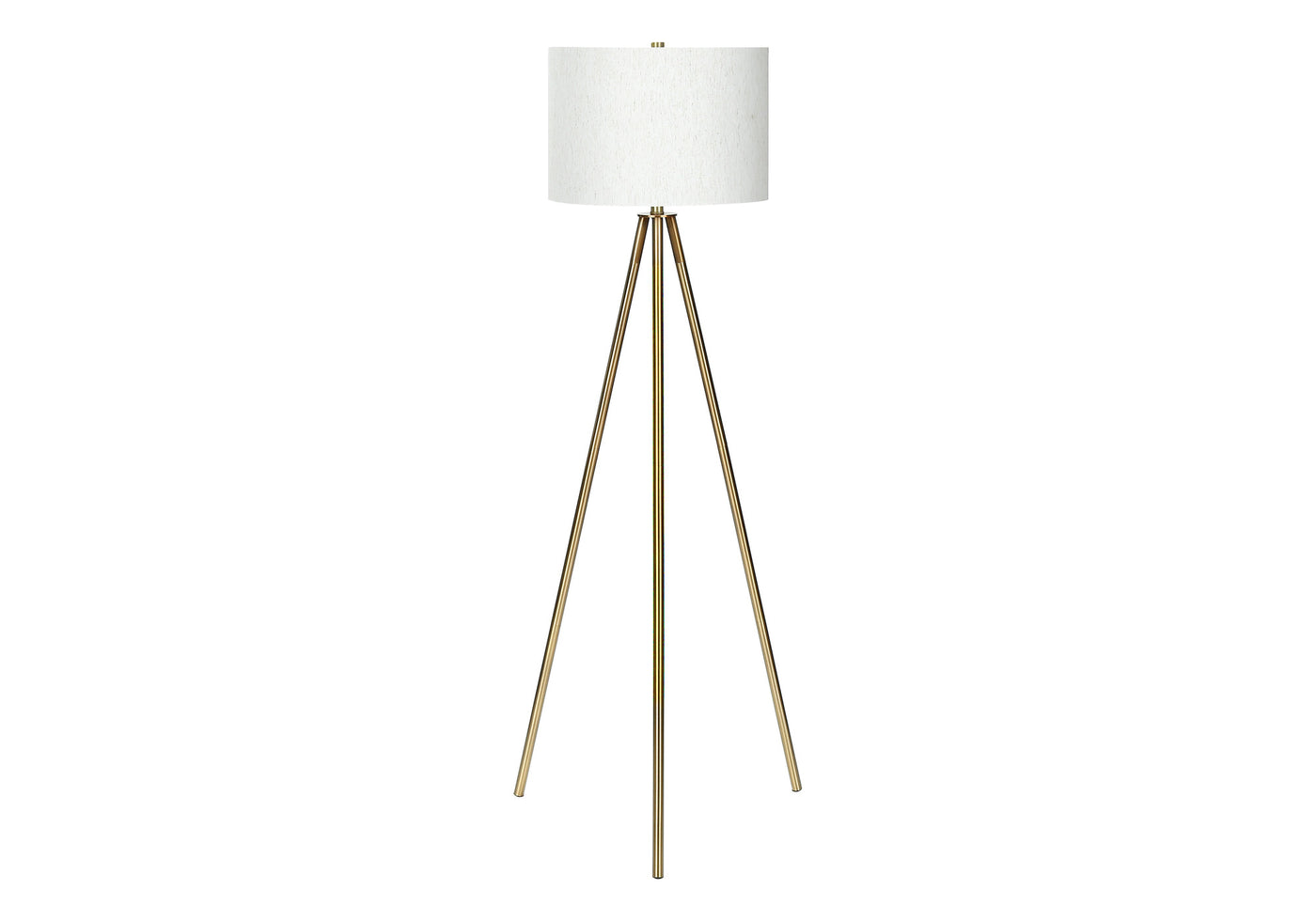 This 63inch matte gold floor lamp with cream drum shade is the perfect combination of design and function mixed with basic good looks. The lamp is made of sturdy metal and features a matte gold tripod base that is a nice contrast with the creamy beige fabric of the drum shaped shade. At almost 63H, this tripod lamp is an ideal height for next to your favorite chair or sofa. Features. 63 Floor Lamp with Cream Drum Shade. Classic yet modern and clean tripod metal floor lamp with drum shade for living room, bedroom, office, or lounge area. Lamp is dimmable for you to adjust light brightness to your liking. Includes a 72 inch clear cord. Features a spider shade fitter to attach the linen fabric shade to the lamp base. Lamp features a 3way rotary socket switch for ease and convenience. Some assembly is required. Uses 1 100W/120V bulb not includedSpecifications. Color Matte Gold. Size 63. Shade Material Fabric. Bulb Maximum Wattage 150. Voltage 120. Floor Lamp Type Tripod. Dimmable Yes. Bulb Type LED. Metal Type Steel. Base Finish Matte. Switch Type Rotary Socket. Shade Color Cream. Shade Shape Drum. Shade Diameter 17. Base Depth 20.5. Fabric Type Polyester. Commercial Use Yes. Room Livingroom. Cord Length 72. Shade Fitter Type Spider. Light Changing Yes. Material Metal. Style Contemporary. Shade Pattern Solid Color. Finish Goldtone. CRI 90. Dimension 62.75 H x 24 W x 24 D. Weight 6 lbs