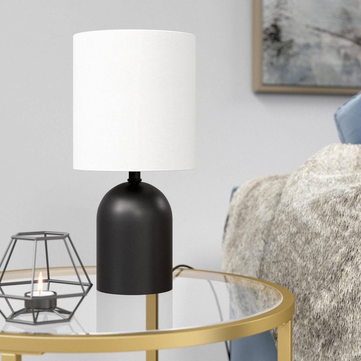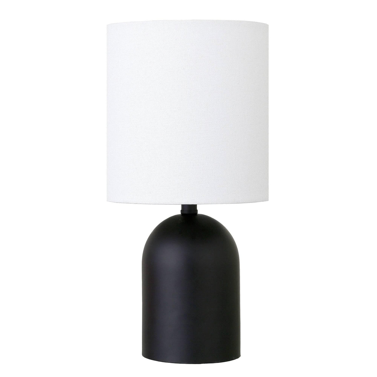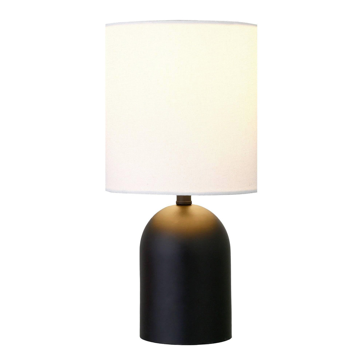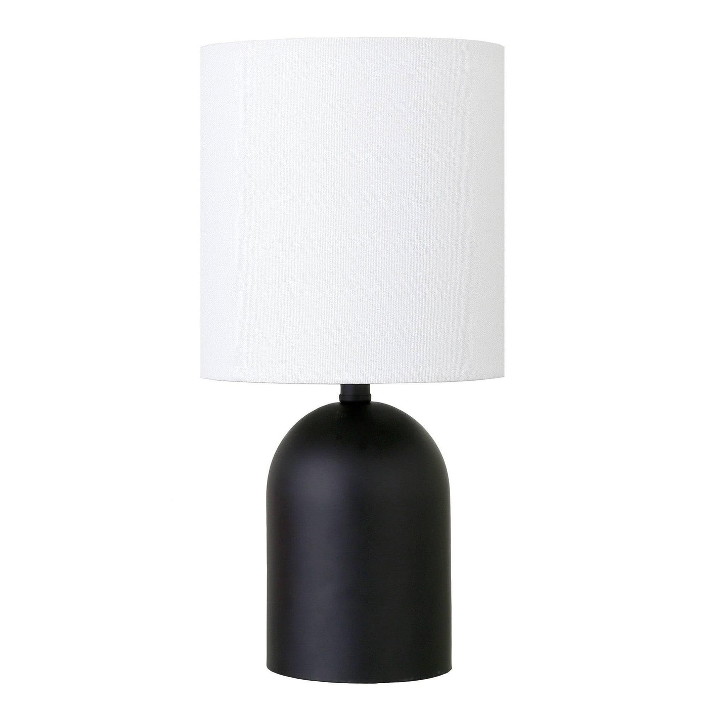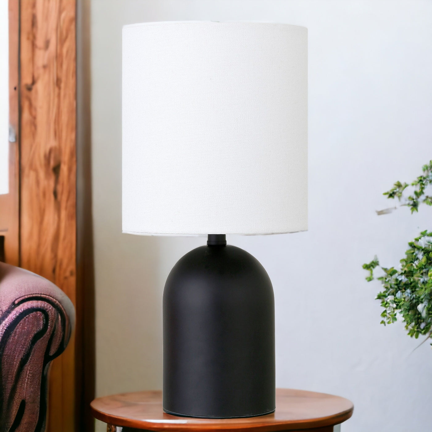 Add a bright anchor to your room with this 13inch black metal cylinder table lamp with white drum shade. A gorgeous black metal base brings just the right amount of pizzazz to this fabulous lamp. Includes a white fabric, drum shaped shade, making this a fashionable piece that will complement most any interior. This standard table lamp is designed to provide general lighting to the area. The light that this lamp throws is soft and warm to elevate the look of most any space in your home. The perfect lamp to create just the right natural and soothing light in your space. Features. Metal Cylinder Table Lamp with White Drum Shade. Lamp features a rocker switch for ease and convenience. Features a threaded uno shade fitter to attach the shade to the lamp base. Standard table lamp with black metal base and white drum shade. Includes a 72 inch cord. Uses E26 bulb with maximum wattage of 40. Comes complete with a fabric shadeSpecifications. Color Black. Size 13. Base Color Black. Bulb Type Required E26. Bulb Maximum Wattage 40W. Voltage 120V. Table Lamp Type Standard. Metal Type Steel. Fixture Material Metal. Shade Material Fabric. Fabric Type 100% Linen. Lamp Shape Cylinder. Style Glam. Dimension 13.25 H x 6 W x 6 D. Weight 1.71 lbs