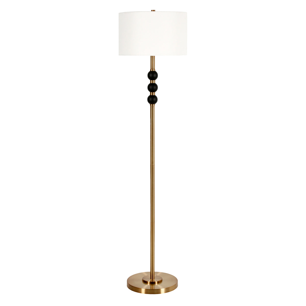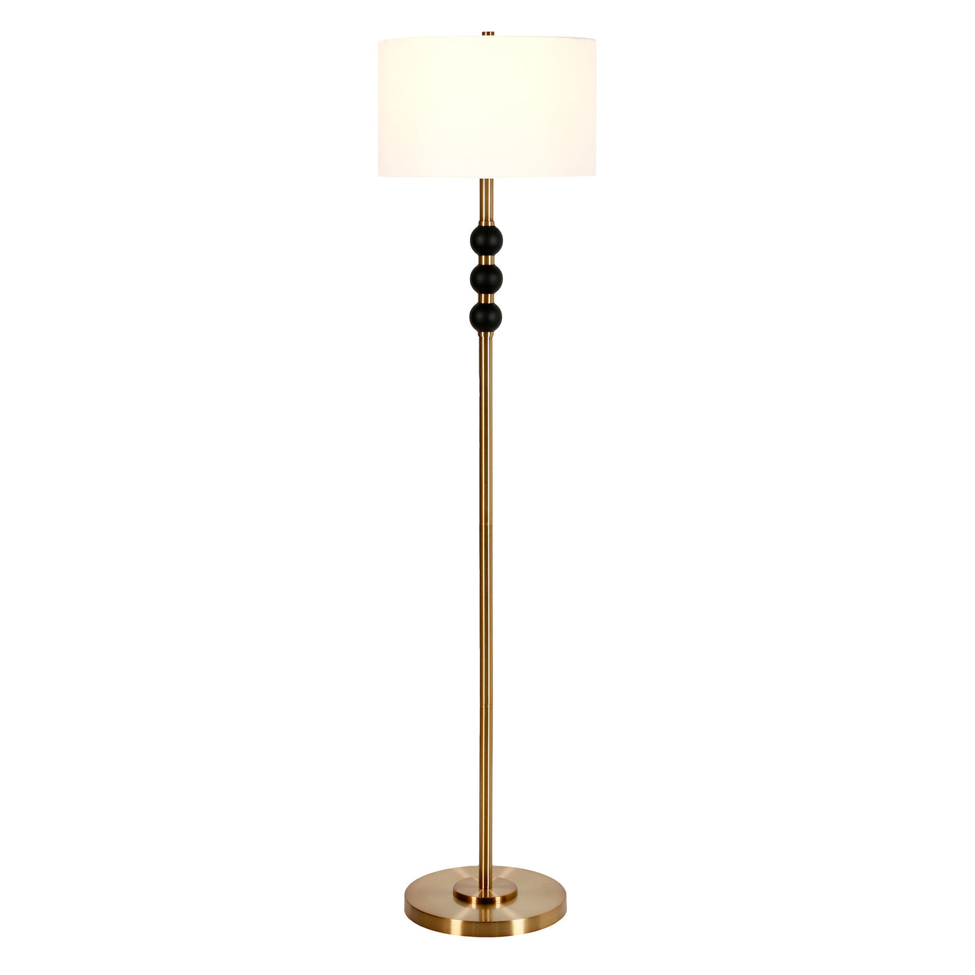 Q: What is the overall height and dimensions of the lamp?A: The HomeRoots floor lamp stands at 62 inches tall and has a shade diameter of 15 inches, with a base depth of 12 inches.