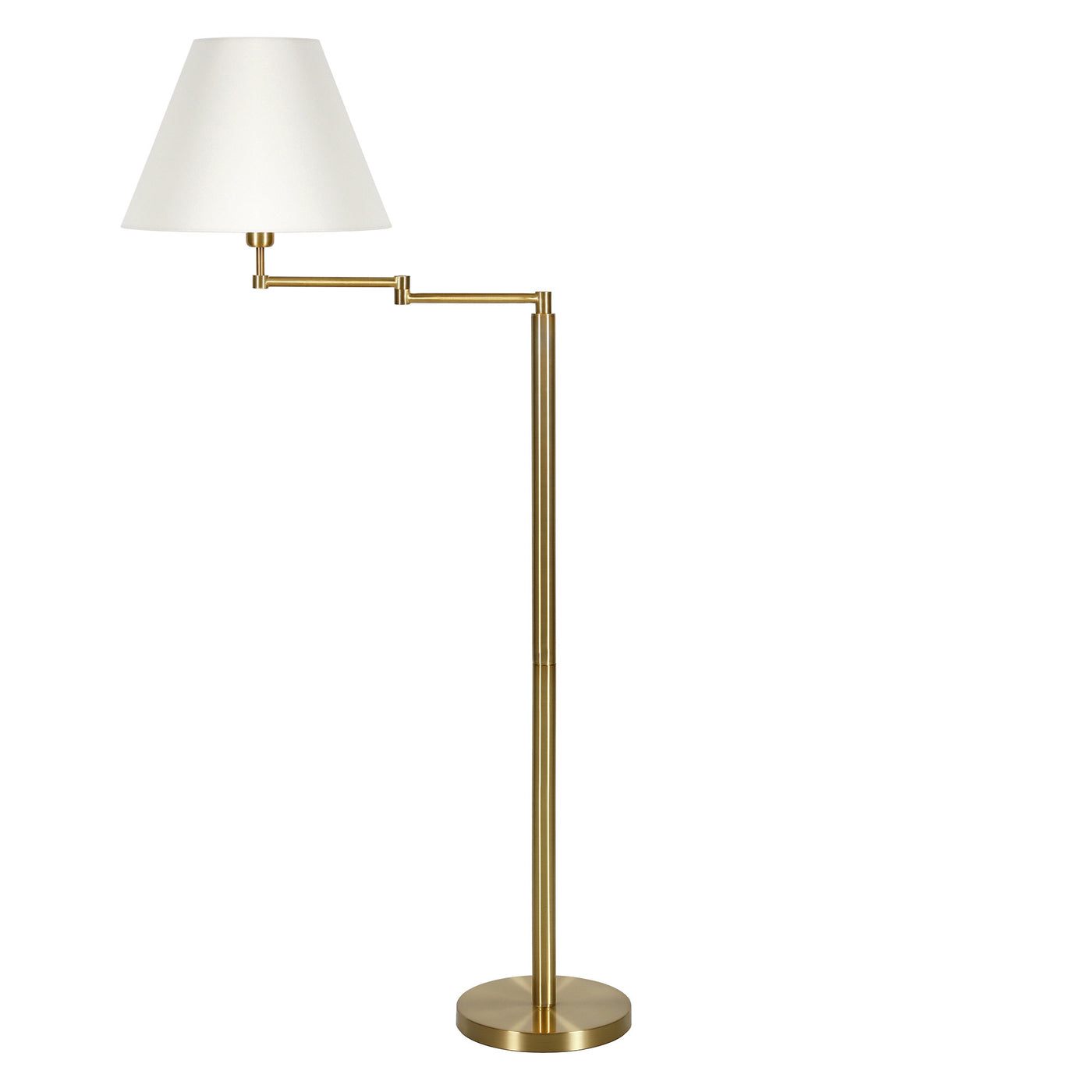 Homeroots 62" Swing Arm Floor Lamp With White Frosted Glass Shade, Brass Finish