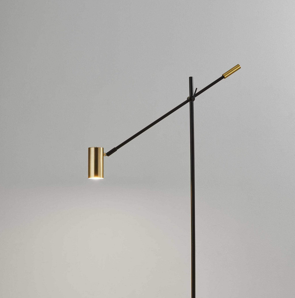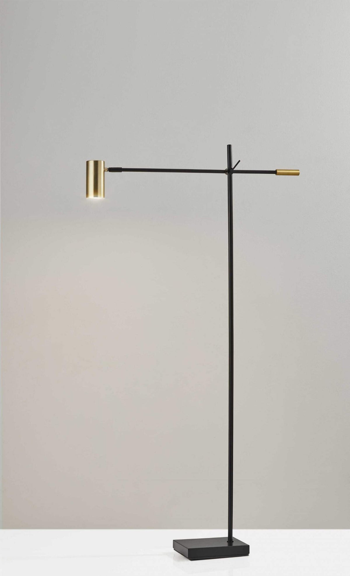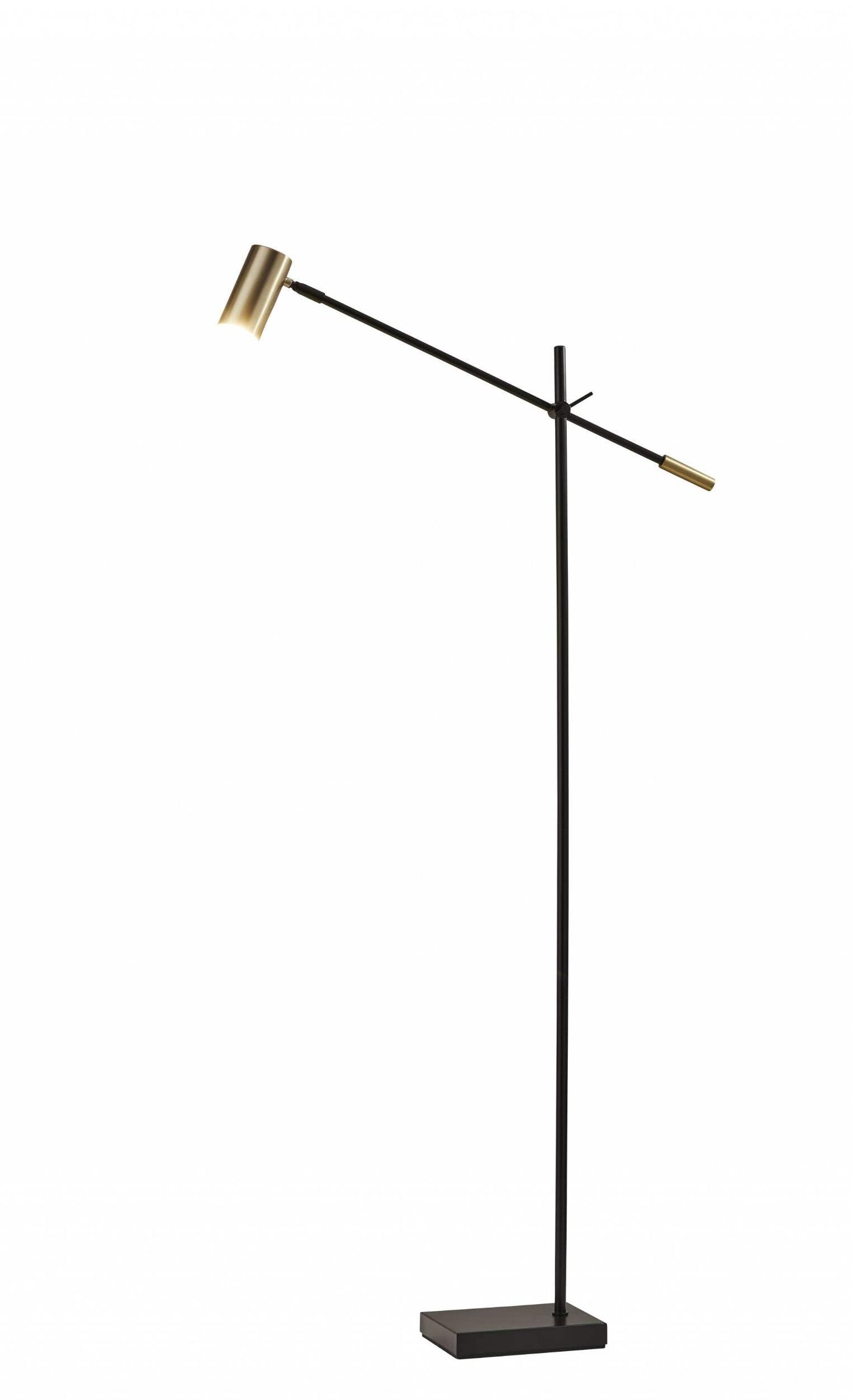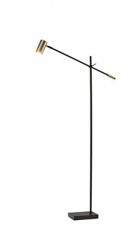 This LED Floor Lamp is a classic, modern task light that illuminates your work space in style. An adjustable arm and shade allow for light to be directed wherever it is needed. A 3-way touch switch offers a variety of light settings up to 650 lumens. A black finish with antique brass accents adds a touch of mid-century modern influence to the design. The long lasting LED's are integrated into the lamp and are not replaceable, but last 50,000 hours! This lamp is not smart outlet compatible. Awe is black and shade is brass