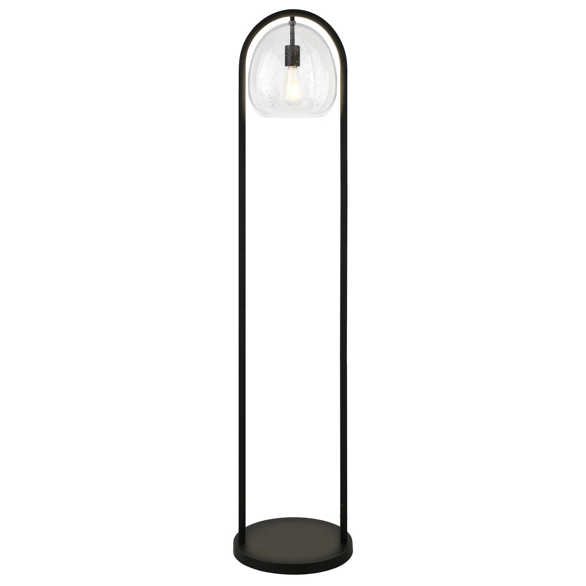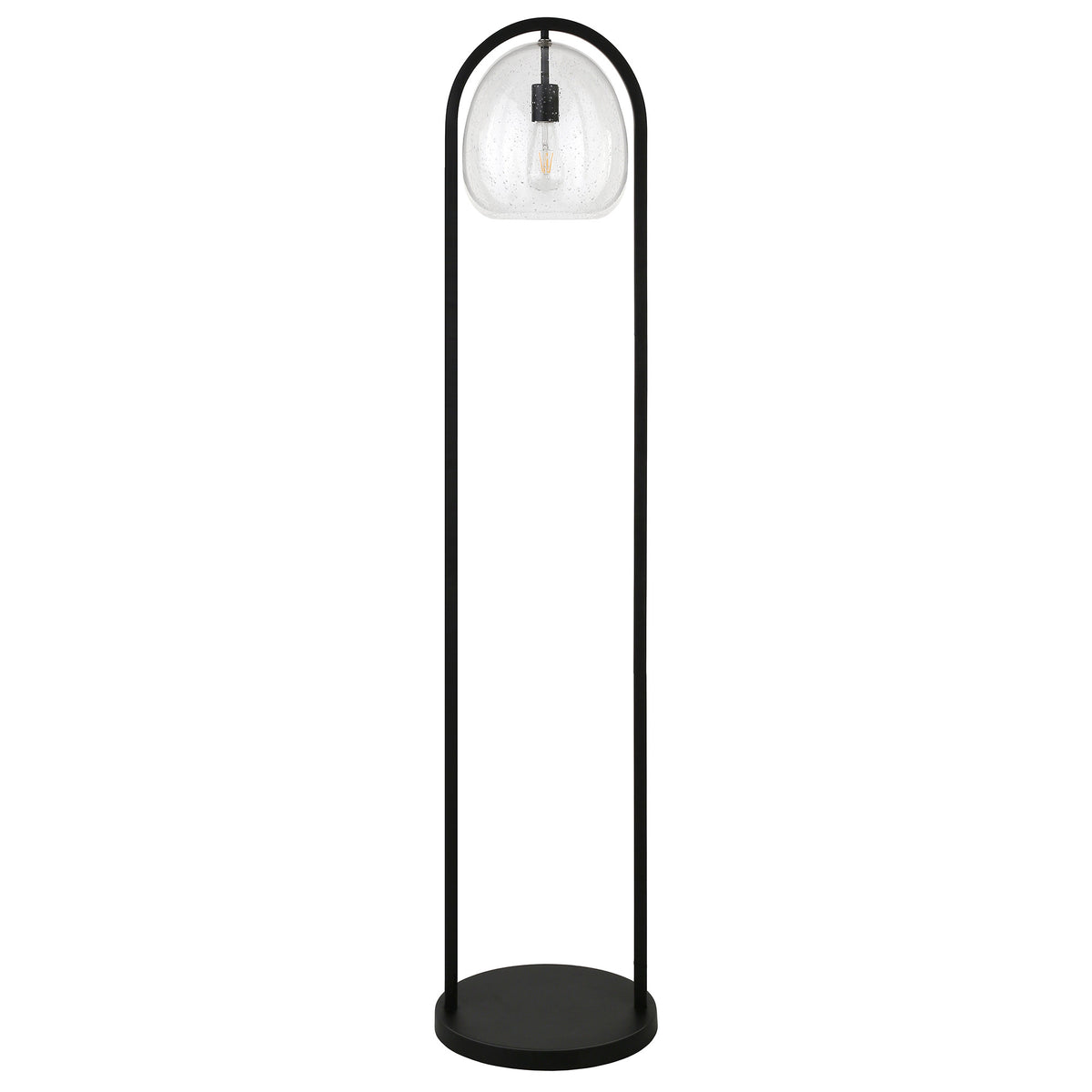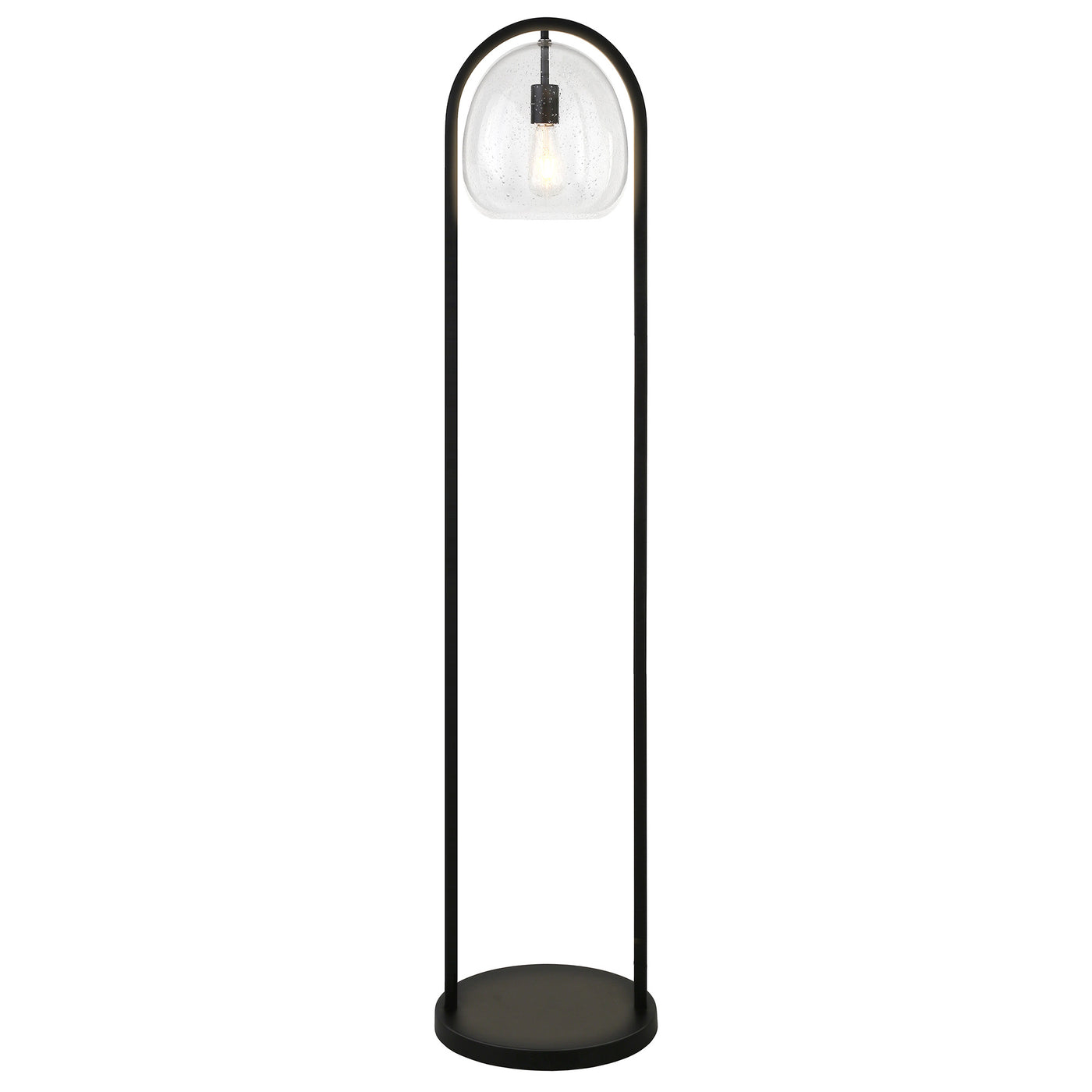 Elevate your living space with the stunning 65 in. Black Column Floor Lamp, featuring a Clear Seeded Glass Globe Shade. This lamp is not just a source of light; it's a statement piece that combines modern design with functional elegance. Crafted from high-quality materials, it seamlessly integrates into various interior styles, making it the perfect addition to your home or office.