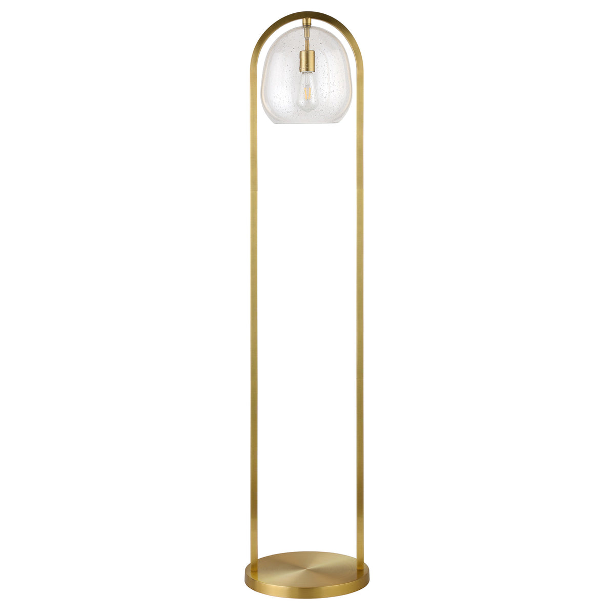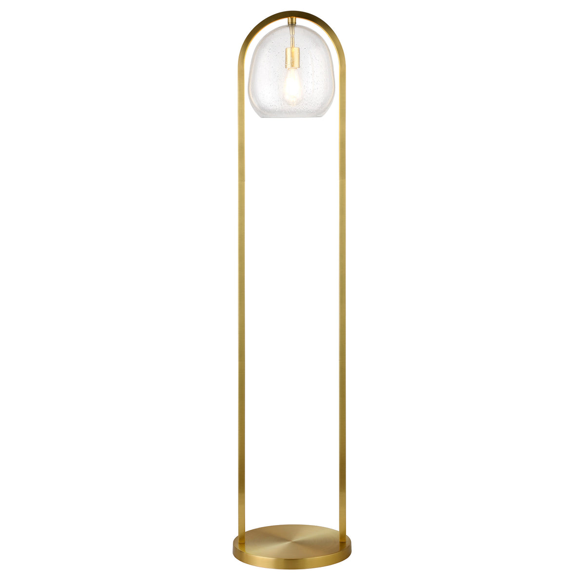 Illuminate your space with the stunning 65 in. Brass Column Floor Lamp featuring a Clear Seeded Glass Globe Shade. This exquisite lamp seamlessly blends modern design with functionality, making it an exceptional addition to any room in your home. Crafted from sturdy metal with a beautiful brass finish, this lamp radiates warmth and elegance, ensuring it enhances your decor while providing ample lighting.