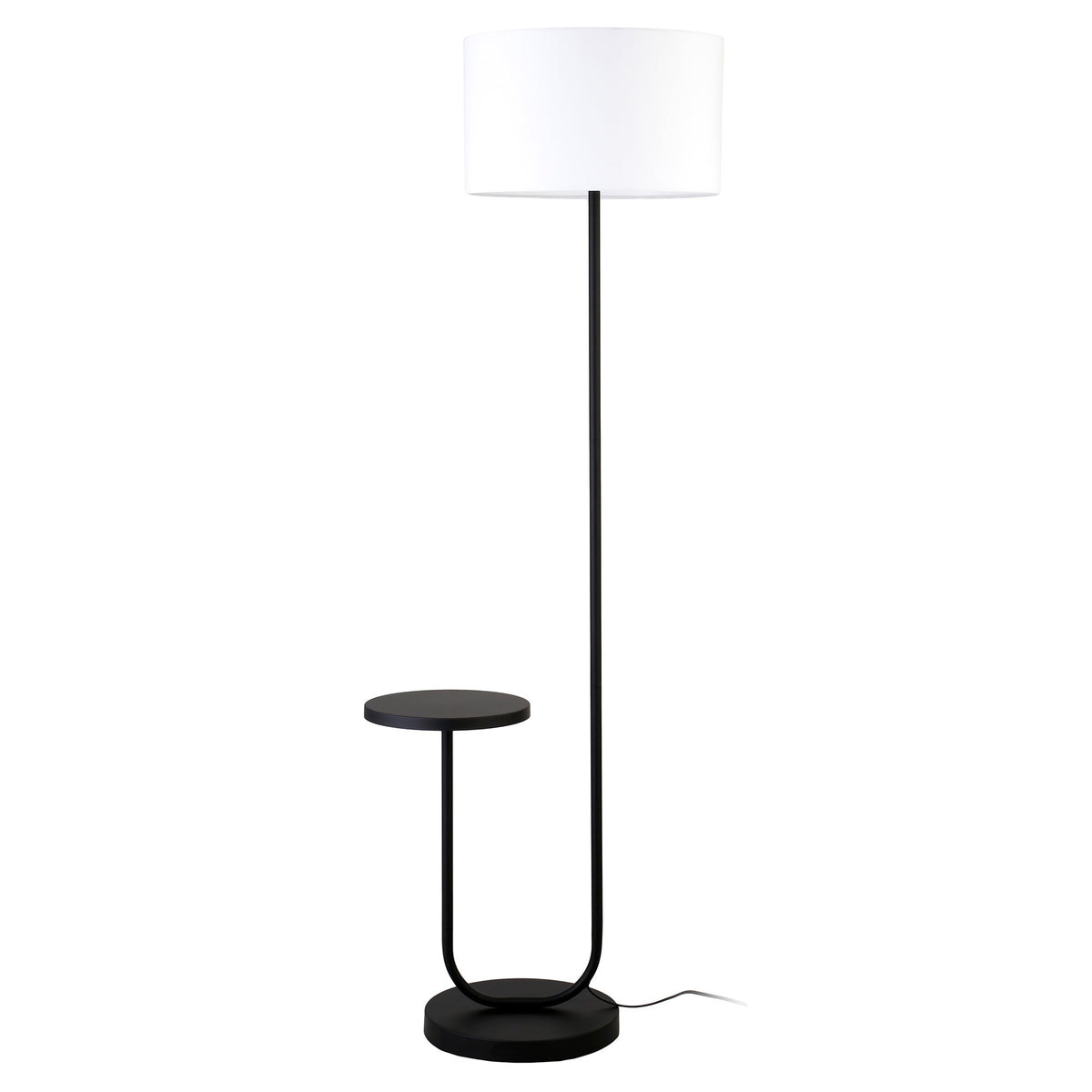 Homeroots 66 In. Black Tray Table Floor Lamp With Frosted Glass Drum Shade