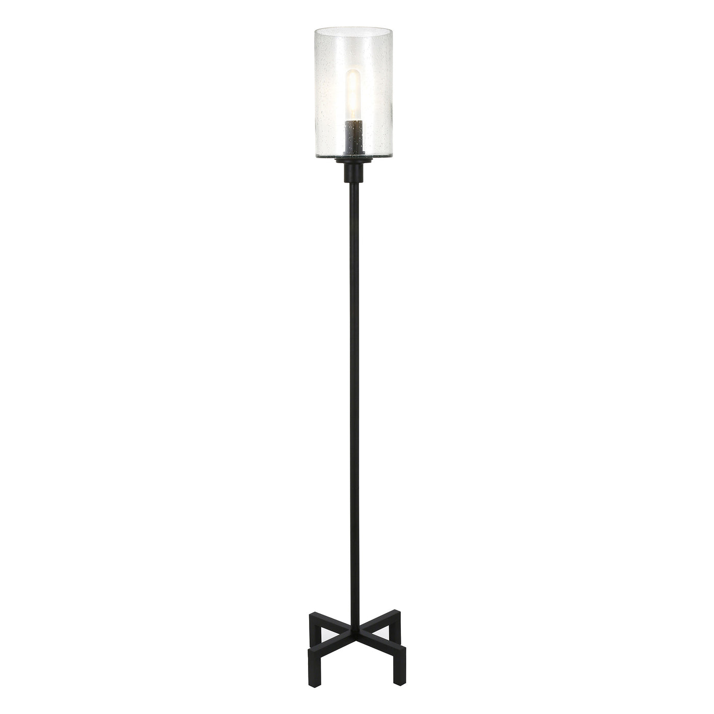 Homeroots 66" Black Torchiere Floor Lamp With Seeded Glass Drum Shade - Modern Lighting Decor