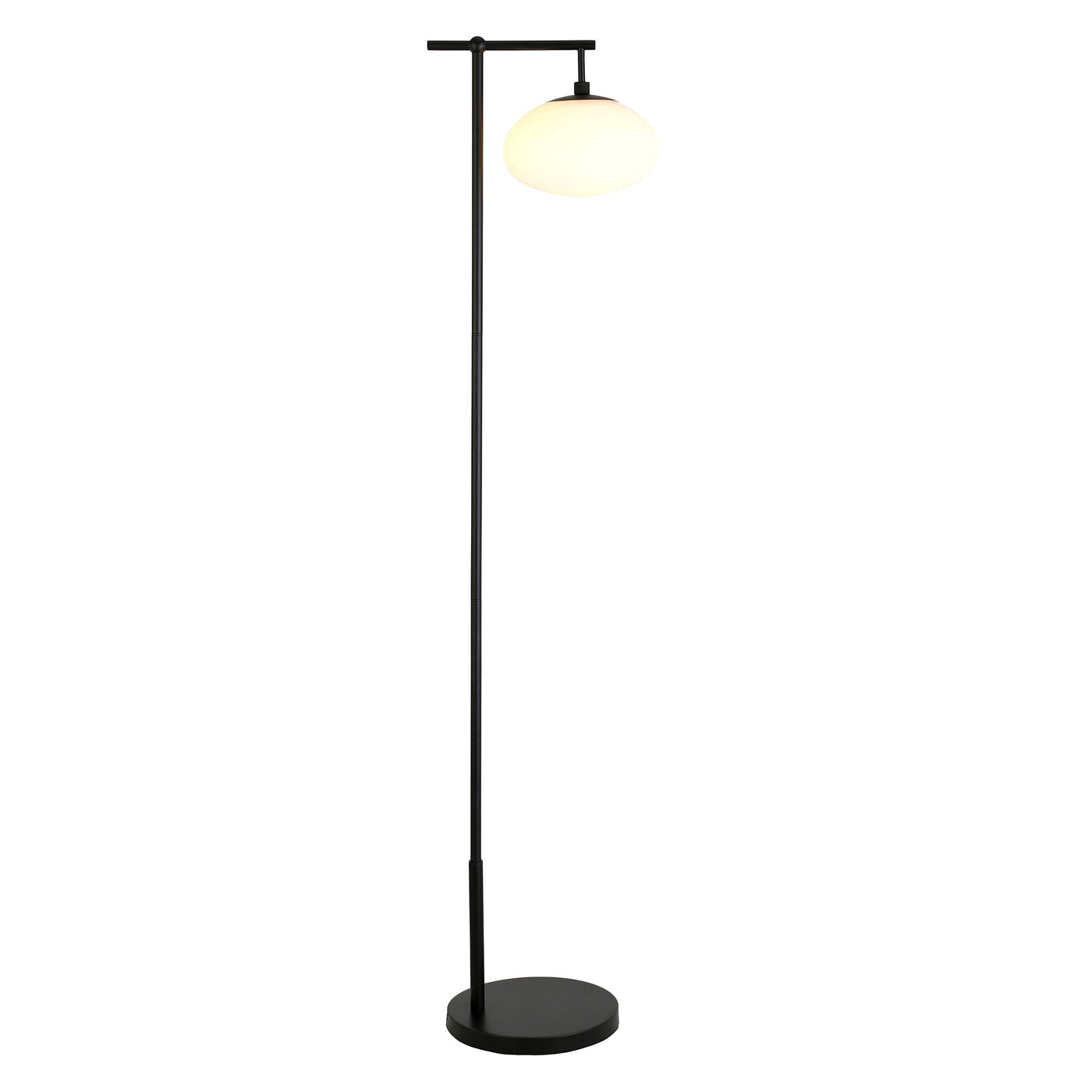 Homeroots 68" Reading Floor Lamp With White Frosted Glass Globe Shade, Black Finish