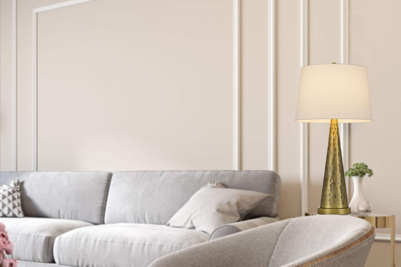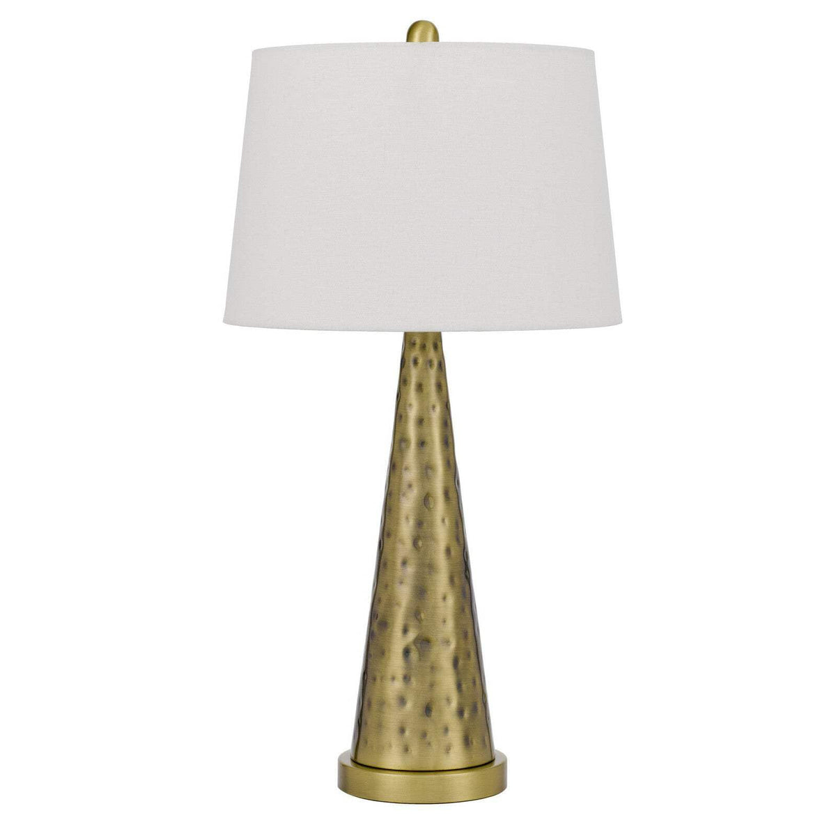 Illuminate your living space with the sophisticated charm of the HomeRoots Antiqued Brass Metal Table Lamp. Standing at 27 inches tall, this beautifully crafted lamp features a durable metal base finished in an elegant antiqued brass tone, perfectly complemented by a stylish white linen empire shade. Ideal for adding both light and ambiance, it serves as a practical lighting solution and a stunning accent piece for any room.