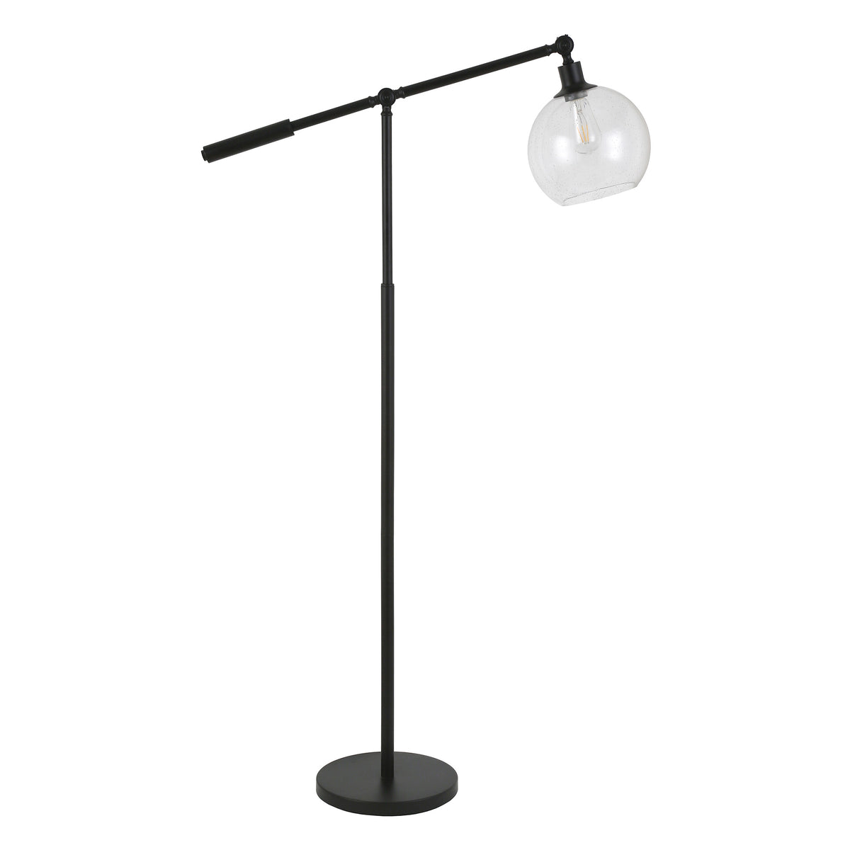 Illuminate your space with the stunning 61 in. Black Reading Floor Lamp, featuring a Clear Seeded Glass Globe Shade. This elegant lamp effortlessly combines style and functionality, making it an ideal addition to any room in your home. Whether you need focused lighting for reading, working, or simply enhancing your ambiance, this lamp is designed to meet your needs while elevating your decor.