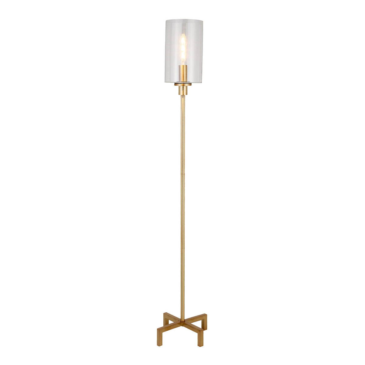 Embrace elegance and functionality with the HomeRoots Brass Torchiere Floor Lamp. This stunning 66-inch lamp effortlessly marries industrial design with classic charm, making it a perfect addition to any living space, office, bedroom, or reading nook. The handcrafted brass finish not only enhances its aesthetic appeal but also infuses a warm and rich tone to your environment. The clear transparent glass drum shade complements the brass base, refracting soft, ambient light that elevates the atmosphere of your home.