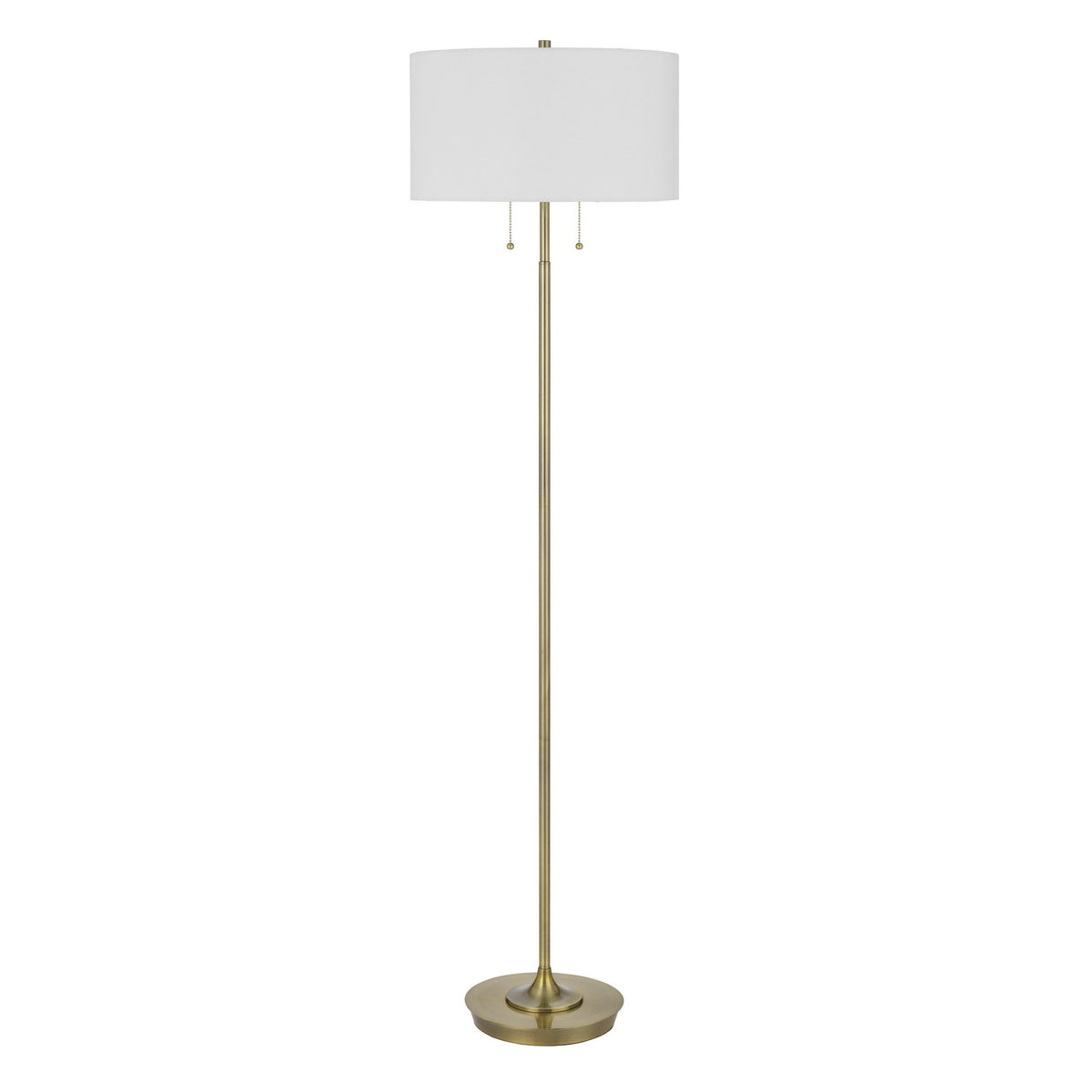 Homeroots Brass Two Light Floor Lamp - 64 In. Traditional Design With White Shade