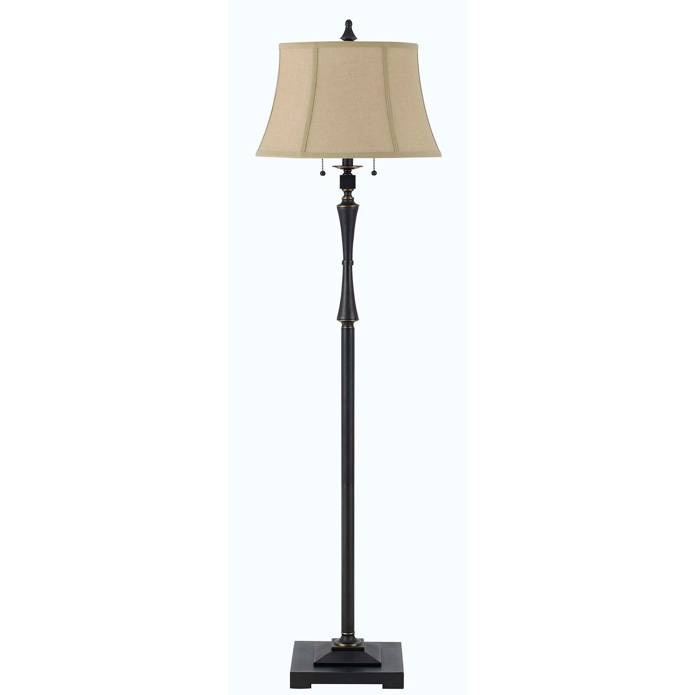 Q: Is the lamp's shade made of fabric or another material?A: Yes, the lamp features a fabric square-shaped shade that complements its traditional design.
