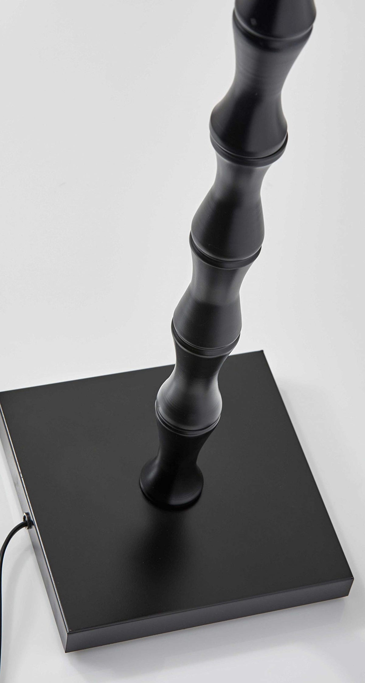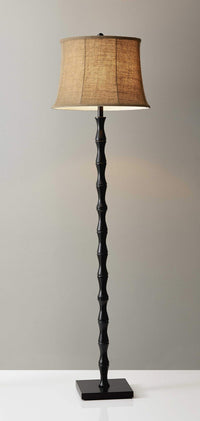 With a painted black metal pole with a repeating motif resembling carved wood this floor lamp is a perfect style for updated traditional or soft contemporary spaces Try its placement in the den home office or wherever you want to add a warm note The medium brown burlap bell shade is secured with a round black wooden finial A 3way rotary socket switch will only work with a 3way light bulb otherwise this lamp will function with simple onoff switch at its highest setting This floor lamp has a black cord and is smart outlet compatible Bulb is not included Features. Medium brown burlap shade. Durable construction for lasting use. Made with the finest material. 3way rotary socket switchSpecifications. Color Black. Material Metal