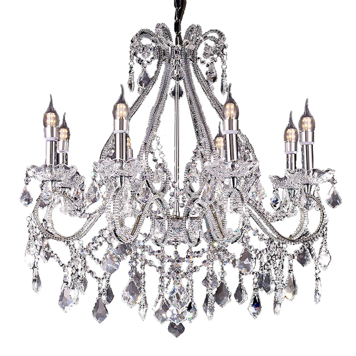 This chandelier light fixture features a classic empire shape and is made from well-made transparent glass, providing a timeless look that complements various decor styles. Designed to accommodate eight LED bulbs, each with a maximum wattage of 5 watts, it offers ample illumination while being energy-efficient. The product is UL listed for safety, ensuring peace of mind for every user. With a hanging height of 30 inches, this fixture serves as a focal point in any room, while its 4-foot chain and 6-inch diameter canopy cover facilitate easy installation.