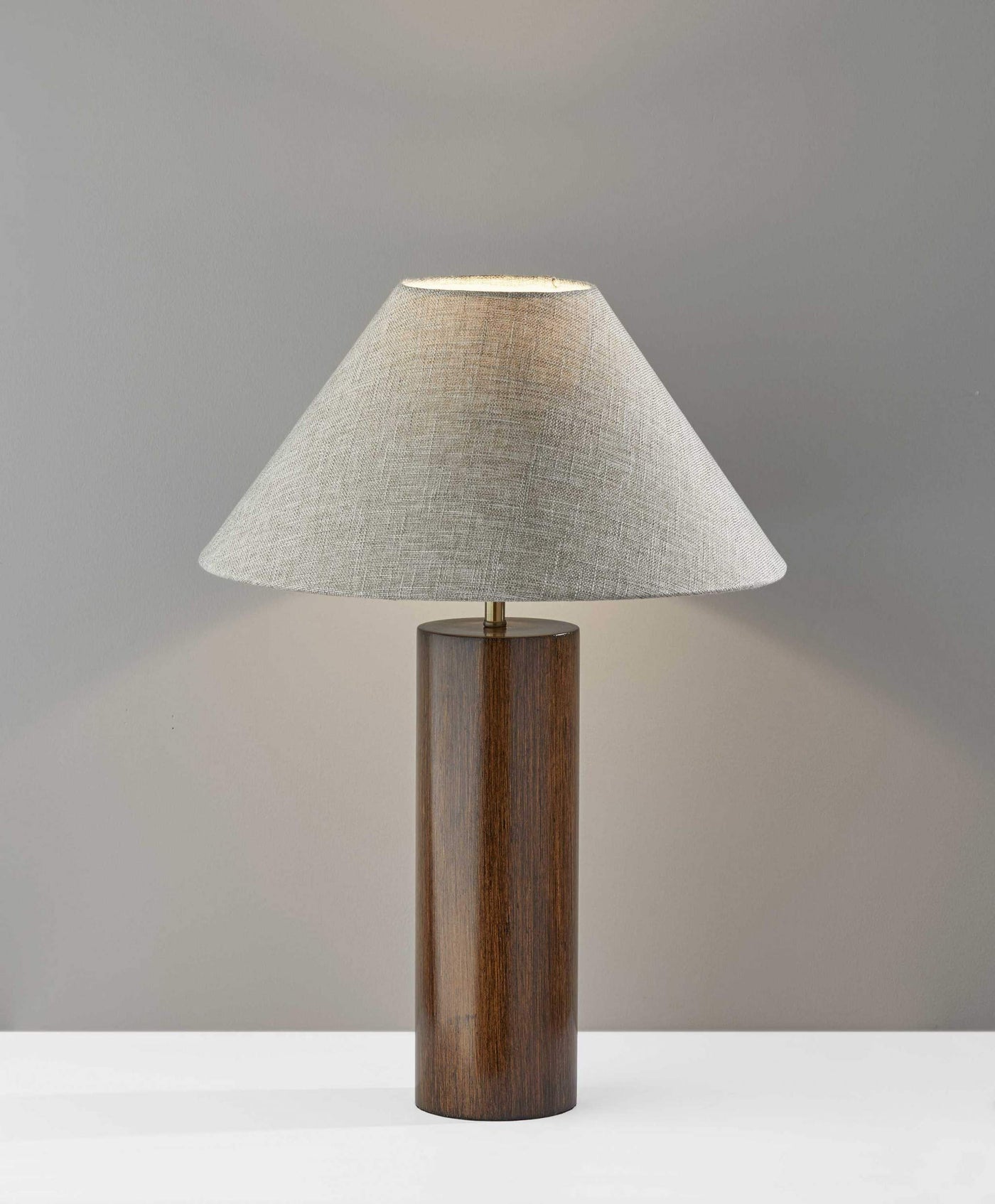 Spruce up your living space or bedroom with this canopy table lamp with a circular block base. Crafted of black poplar wood with a touch of antique brass metal, this lamp will add a classy touch of modern styling to your home. A retro-inspired shade shape is comprised of light grey textured fabric. Turn the lamp on and off with a convenient switch on the socket. All lighting product is either UL or ETL listed, meaning that it has been tested and approved to meet the government-regulated safety standards for the USA. Bulb is not included.DetailsGTIN (UPC/EAN):4512839455624Shipping Weight:12.3 PoundsShipping Size (Inches.): 11 W x 18.9 D x 21.7 H Number Of Cartons:1Shipping Method:ParcelShip from ZIP Code:30043Ship Palletized:NoItem Height:25.5 InchesItem Width:18 InchesItem Depth:18 InchesItem Weight:9 PoundsCountry of manufacturer:ChinaShipping Weight Carton 1:12.3Shipping Height Carton 1:21.7Shipping Width Carton 1:11Shipping Depth Carton 1:18.9Additional attributesBulbs RequiredYesBulb Type RequiredE26 Medium BaseTable Lamp TypeBedsideBase ColorBlackBase Metal TypeNot MetalNumber of Lights1Fixture MaterialManufactured WoodSwitch IncludedYesSwitch TypeRotary SocketShade IncludedYesShade ColorGrayShade MaterialFabricKeywordsblack wood block table lamp, canopy black wood block table, wood block table lamp, block table lamp, canopy black woodBase MaterialSolid WoodBulb baseE26/Medium (Standard)Shade ShapeConeCommercial UseYesRoomLiving RoomTitle 24 CompliantYesSizeMediumColorBlackStyleContemporaryAssembly RequiredFull Assembly NeededBase FinishBlackFinishAntiquedSwitch LocationSocketPlug-InYes