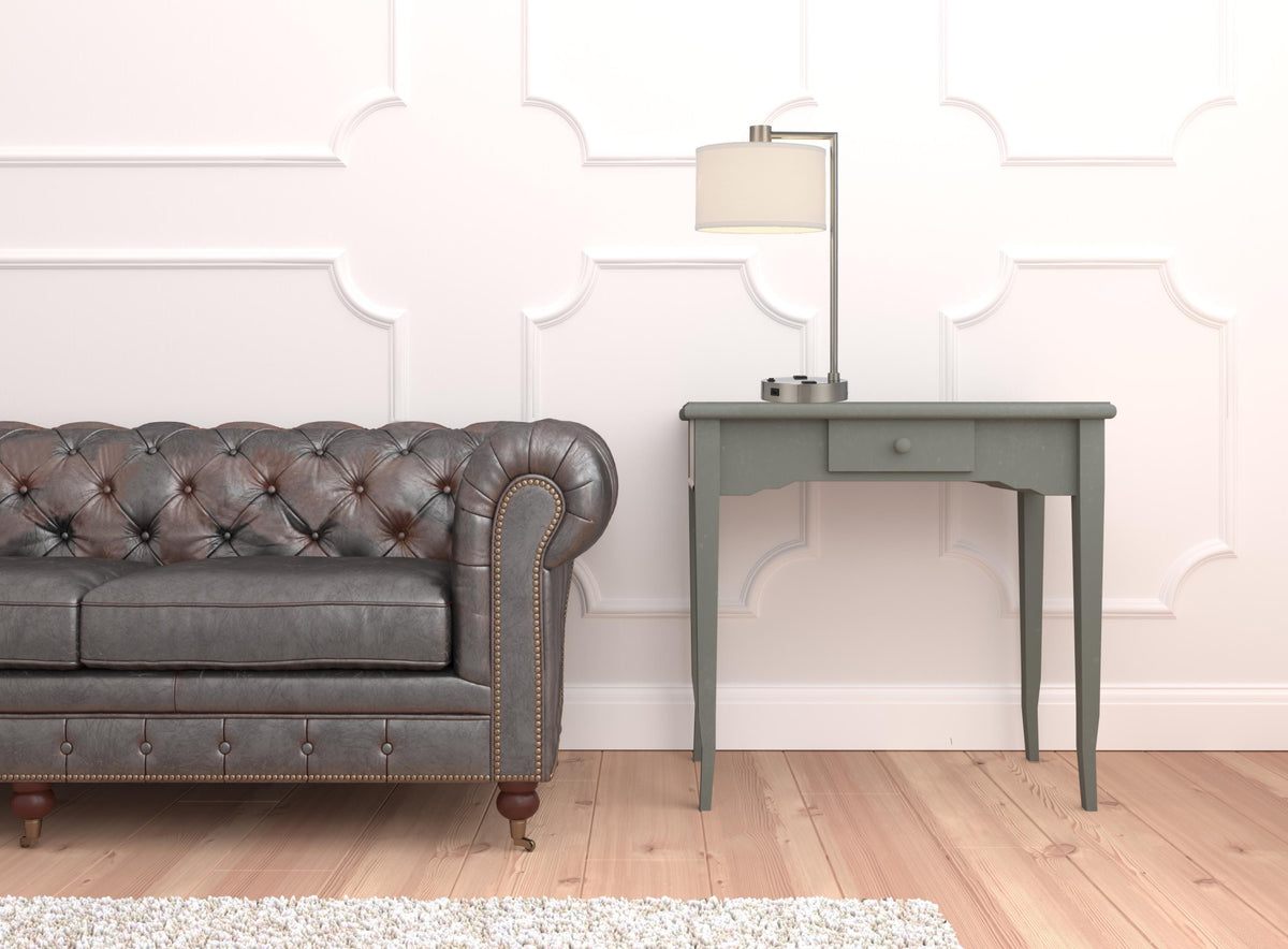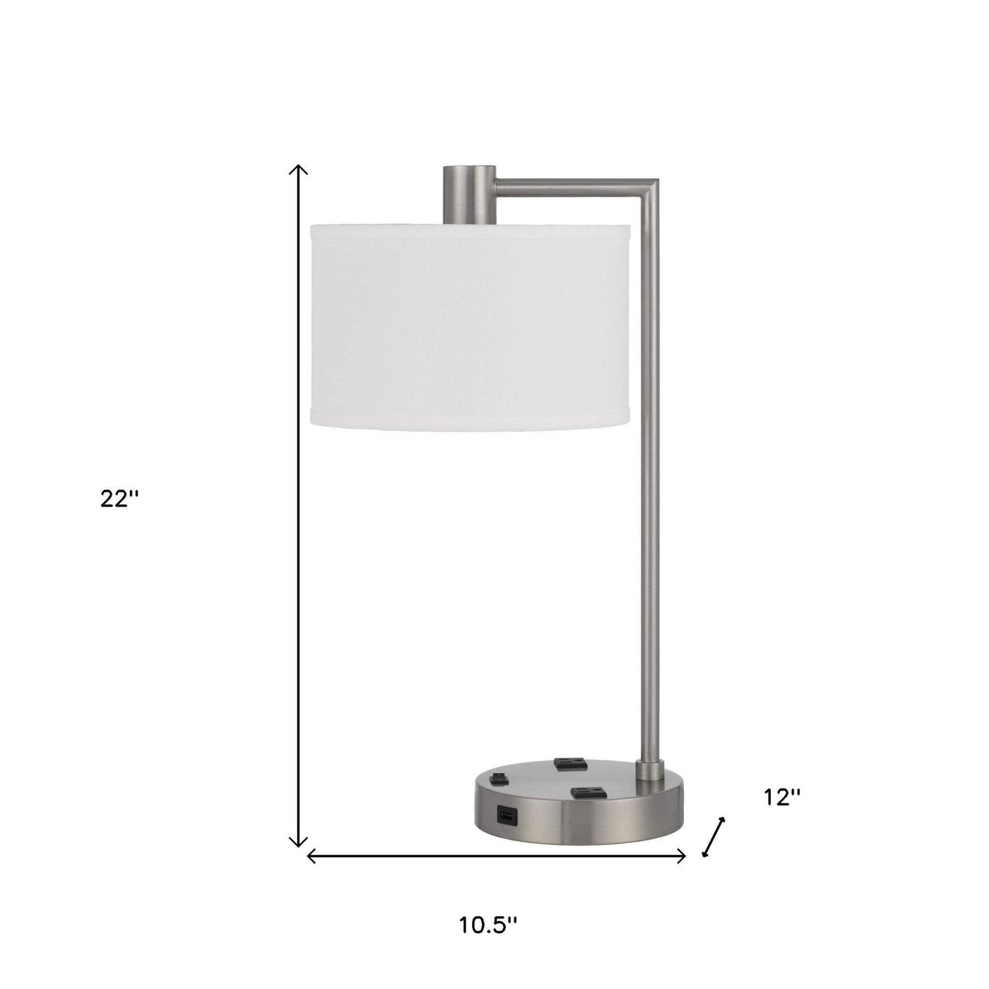 Homeroots Metal Desk Usb Table Lamp With White Drum Shade - 22 In. Nickel Finish