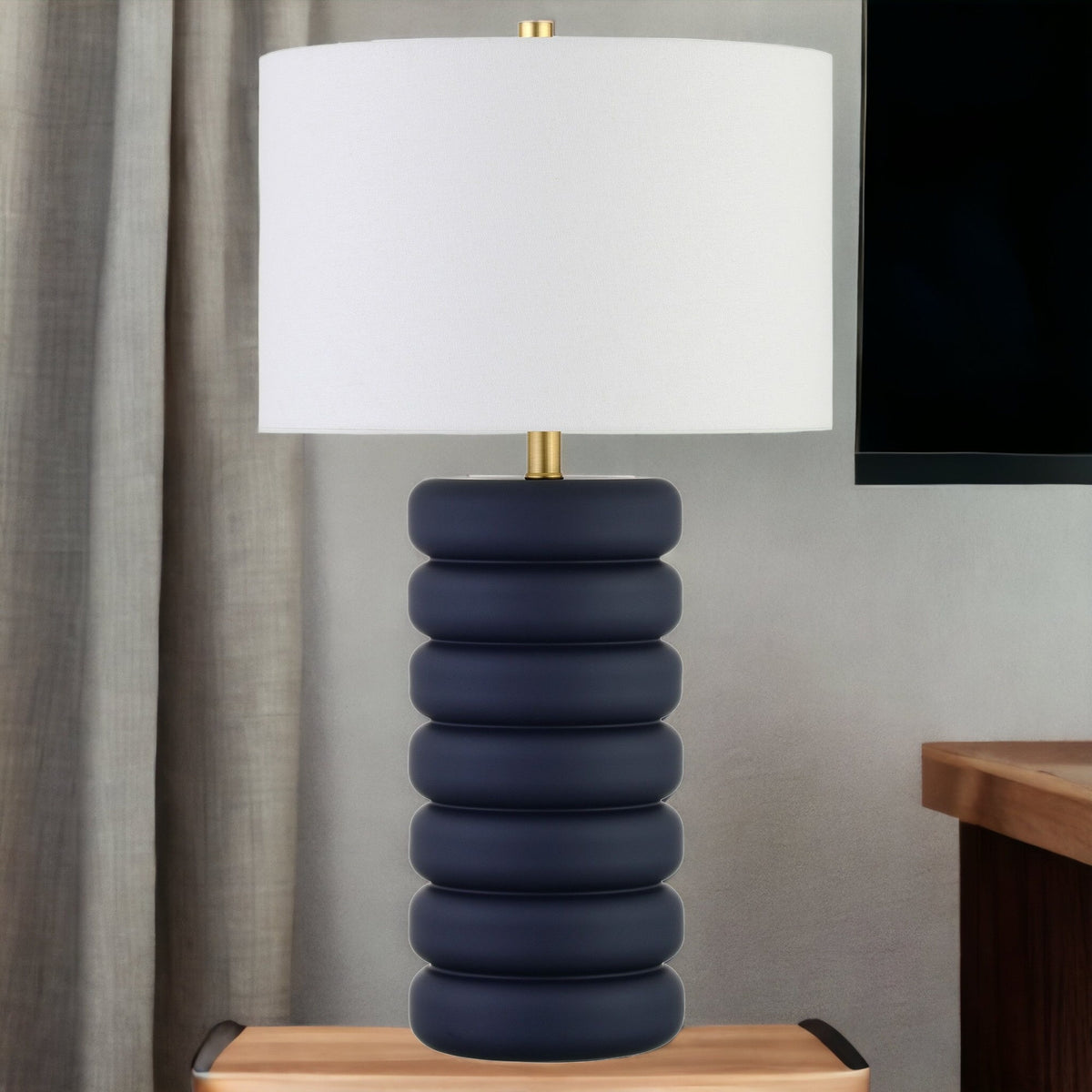 Homeroots Navy Blue Ceramic Table Lamp With White Drum Shade, 25 In. Height