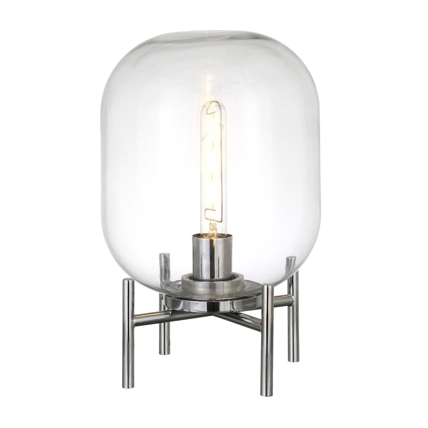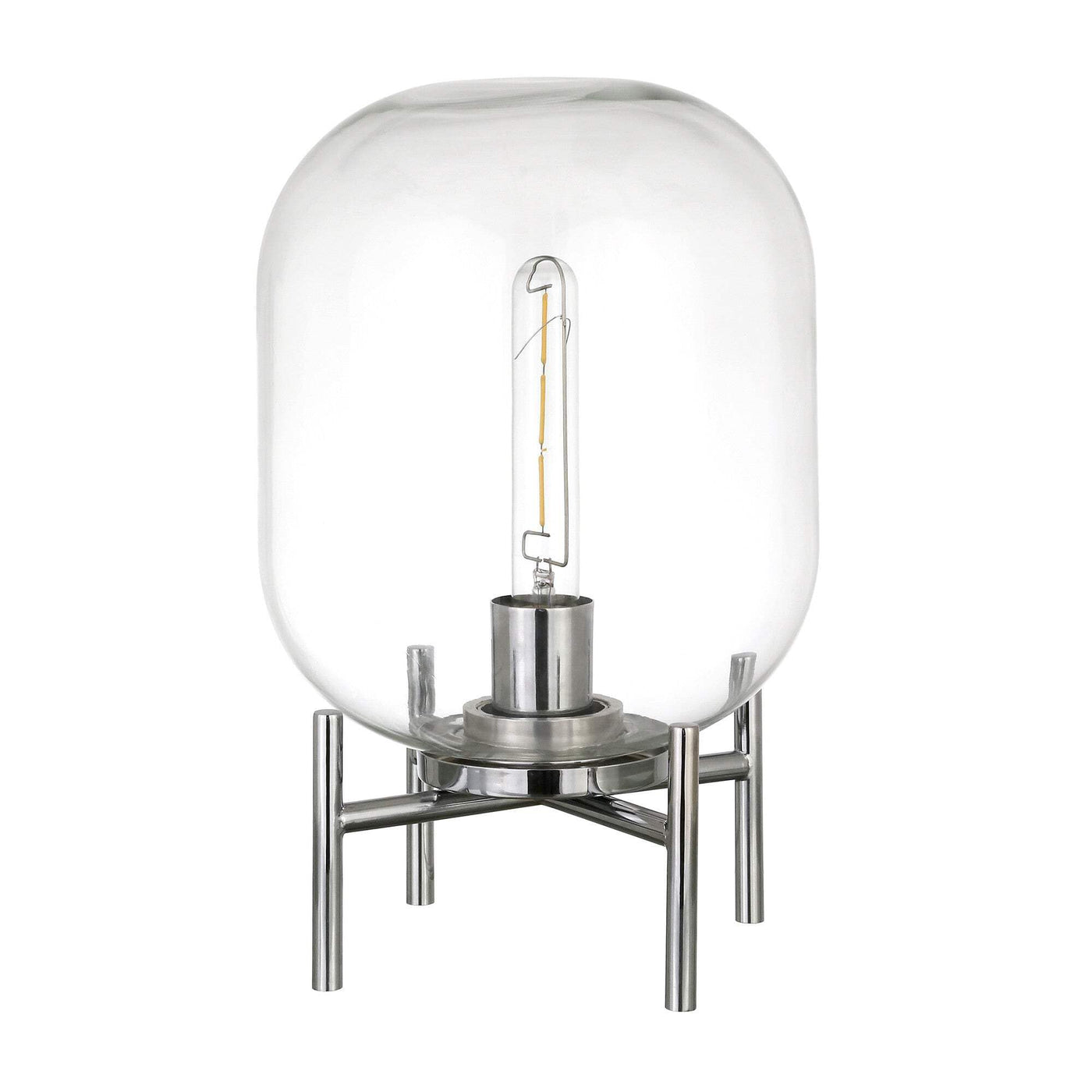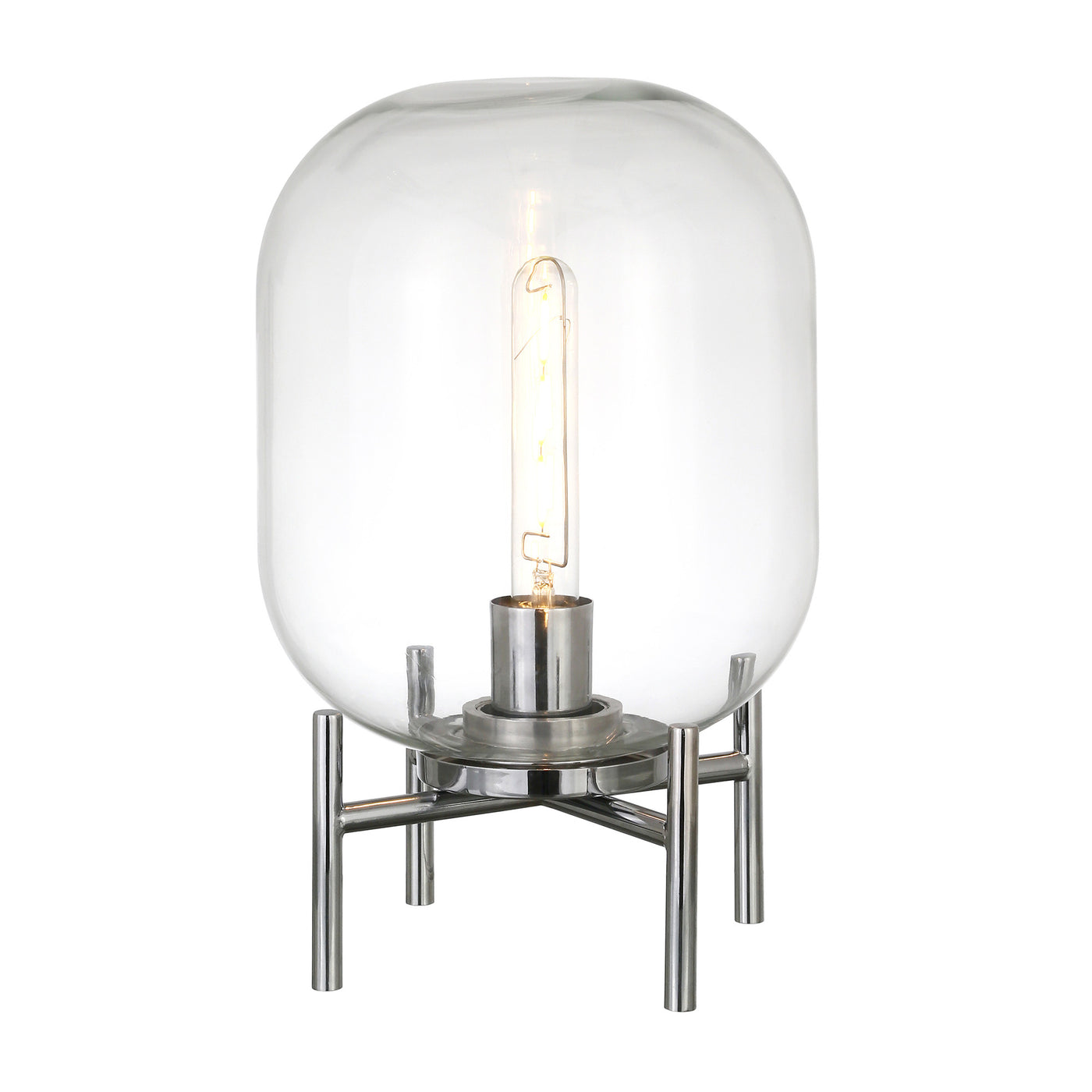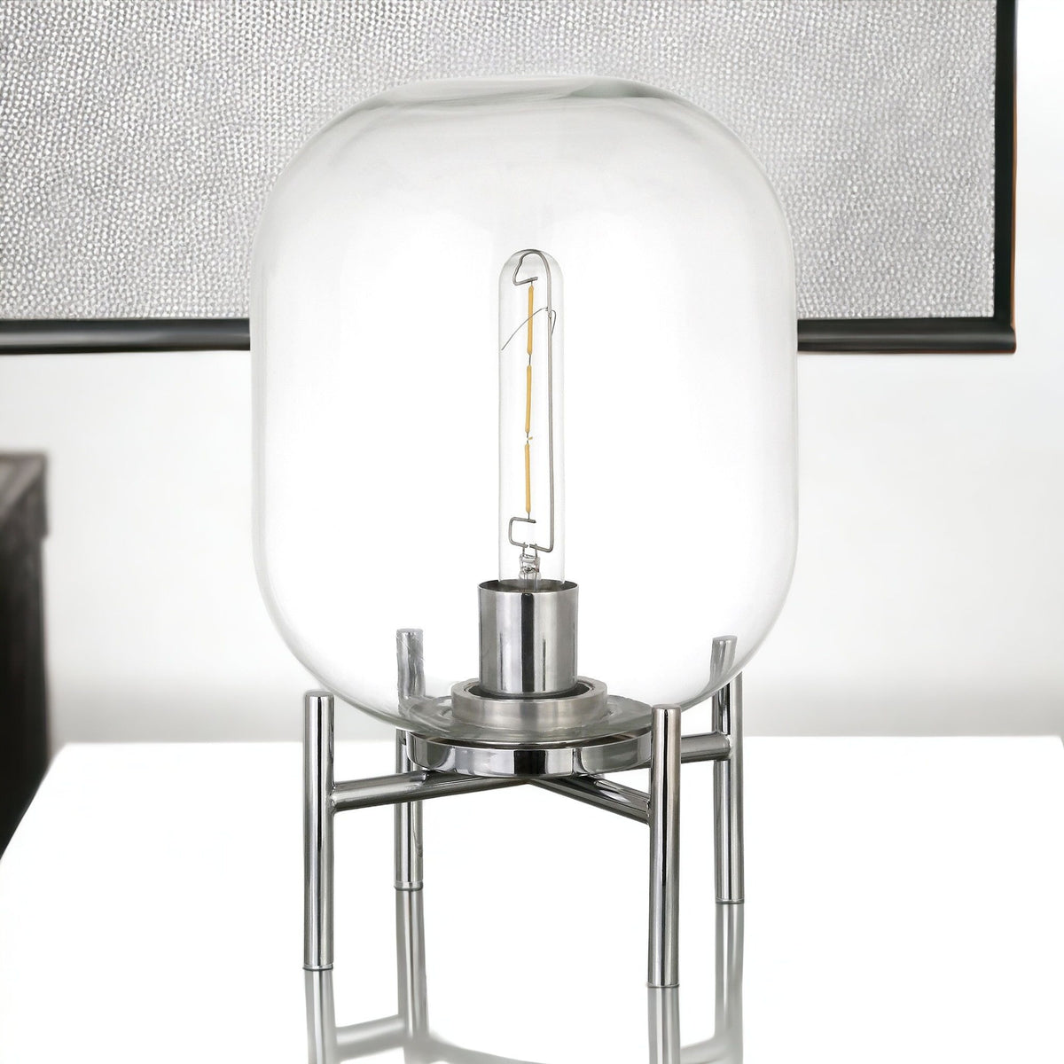 Homeroots Nickel Metal Table Lamp, 15 In. Clear Cylinder Shade, Modern Lighting Decor