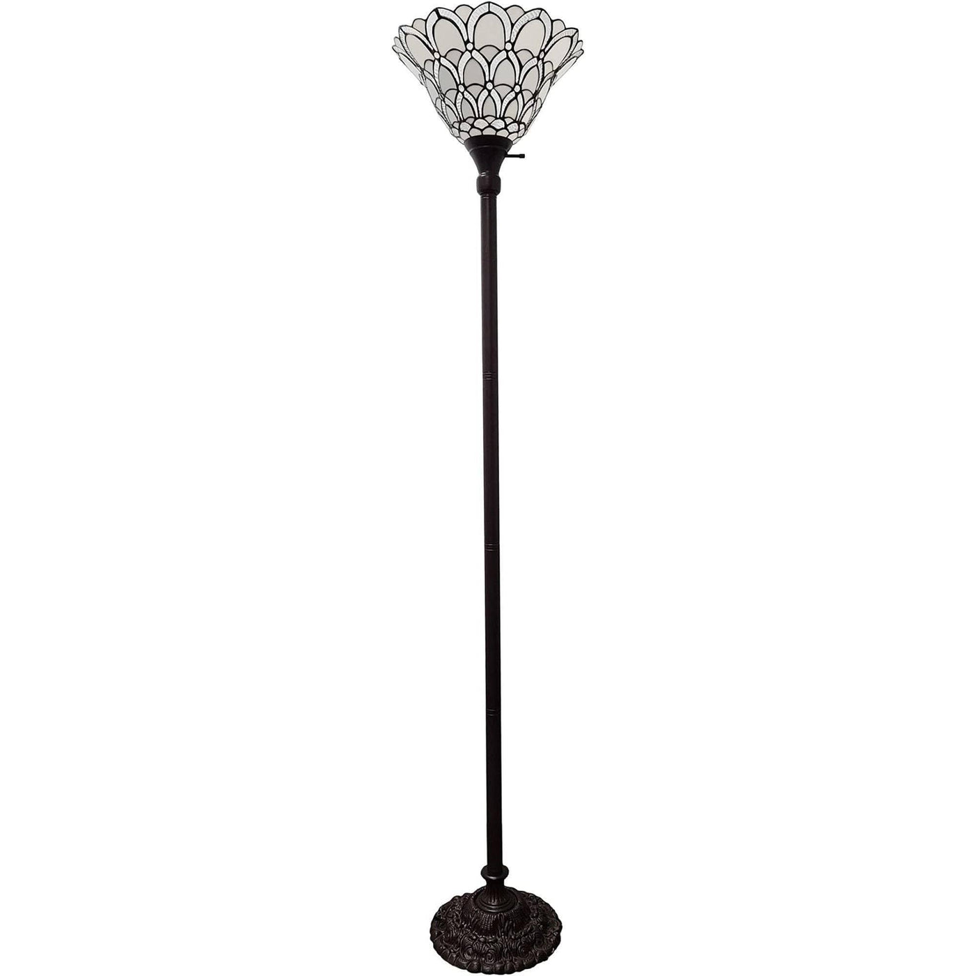 Homeroots Traditional Brown Floor Lamp With White Stained Glass Bowl Shade, 62 X 14 X 14 In.