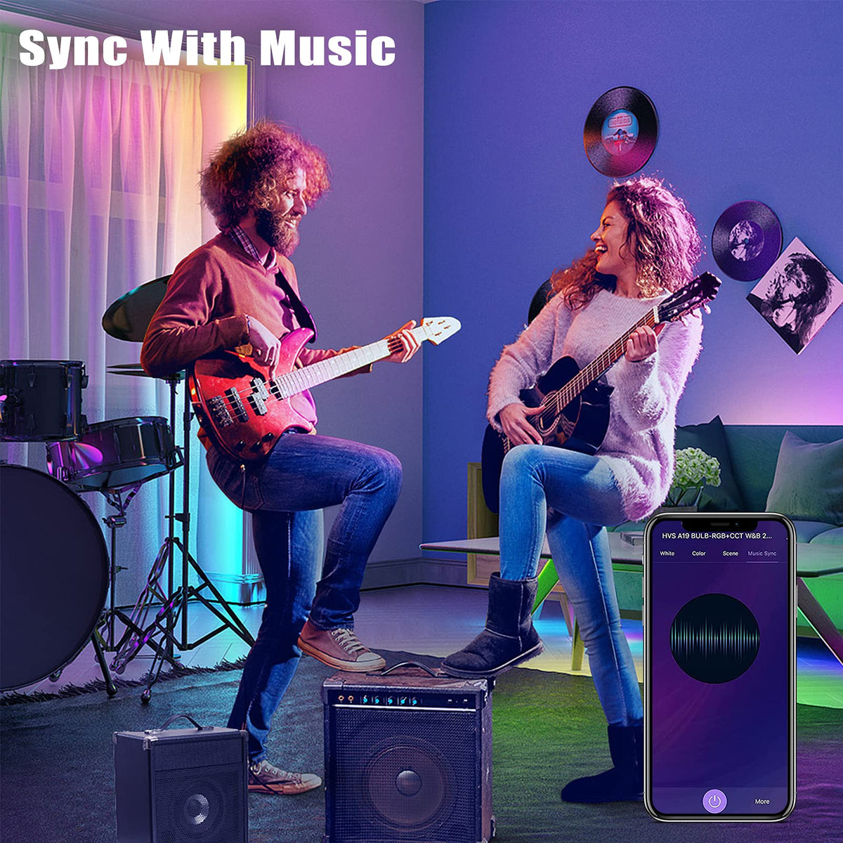 Q: Can the Homevenus HVS Smart Light Bulbs change colors according to music?A: Yes, the Homevenus HVS Smart Light Bulbs can synchronize with music and change colors or flash based on the rhythm and beats, which enhances the atmosphere in your home.