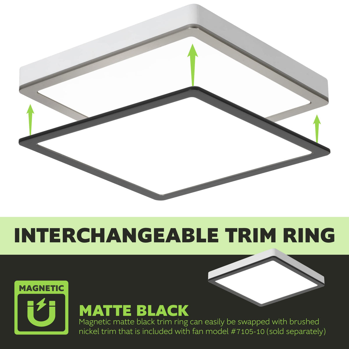 Homewerks Ventilation Fans Look Great Throughout The Home. This Magnetic Matte Black Trim Ring Is Sold As A Replacement Part For Changing Out The Brushed Nickel Finish Trim That Comes With The Model 7105-10 Bath Fan (Sold Separately). This Optional Matte Black Magnetic Trim Is Easy To Install And Is Only Compatible With The 7105-10 Homewerks Ventilation Fan (Sold Separately). Installation Is Simple And Decorative Trim Can Also Be Easily Removed For Cleaning. The Modern Matte Black Finish Will Coordinate The Look Of This Ventilation Fan With The Existing Matte Black Fixtures Or Hardware In Your Home. Bath Fan Not Included. An Optional Chrome Magnetic Trim Is Also Available (Model 7105-10-Trch Is Sold Separately) In Addition To The Brushed Nickel Finish Trim That Is Included With The Bath Fan Purchase. Change Up Your Exhaust Fan Model #7105-10 With This Chrome Trim Ring From Homewerks.