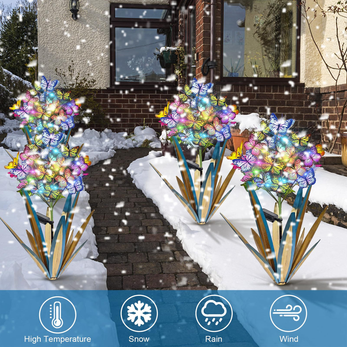 Solar-powered butterflies that change colors at night for an enchanting display.