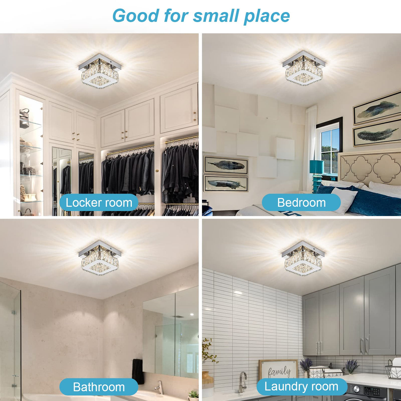 Compact Size: Dimensions of 6.3"x6.3" and a height of 3.94" make this crystal ceiling light perfect for lower ceilings or smaller spaces like bedrooms, entryways, and bathrooms.
